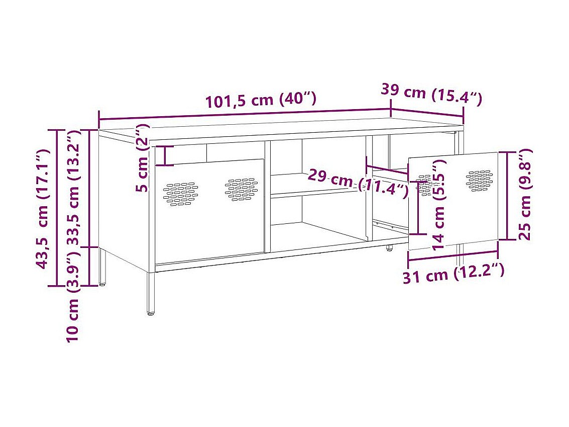 TV-Schrank Rosa 101,5x39x43,5 cm Kaltgewalzter Stahl