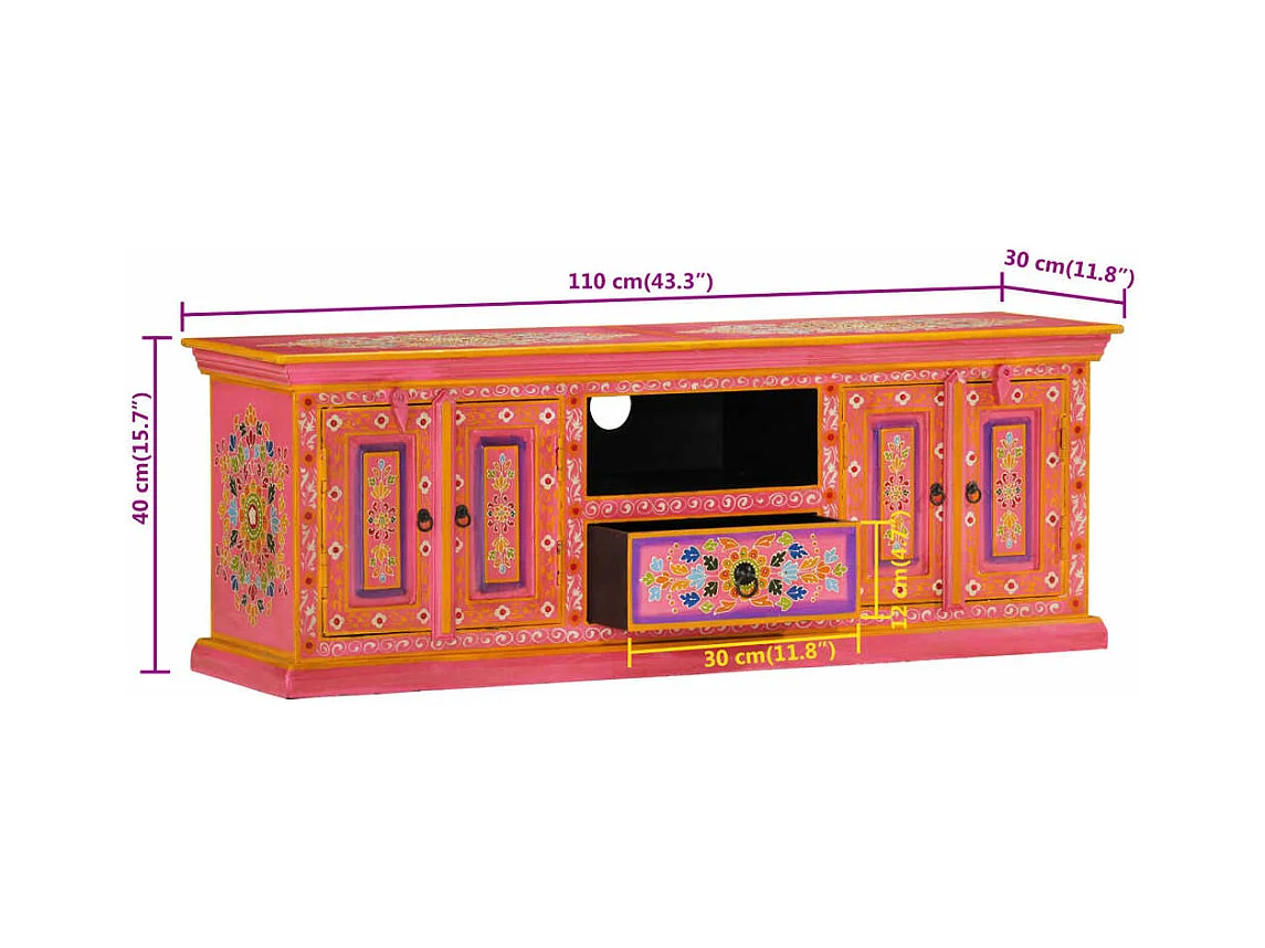 TV-Schrank Rosa 110x30x40 cm Massivholz Mango