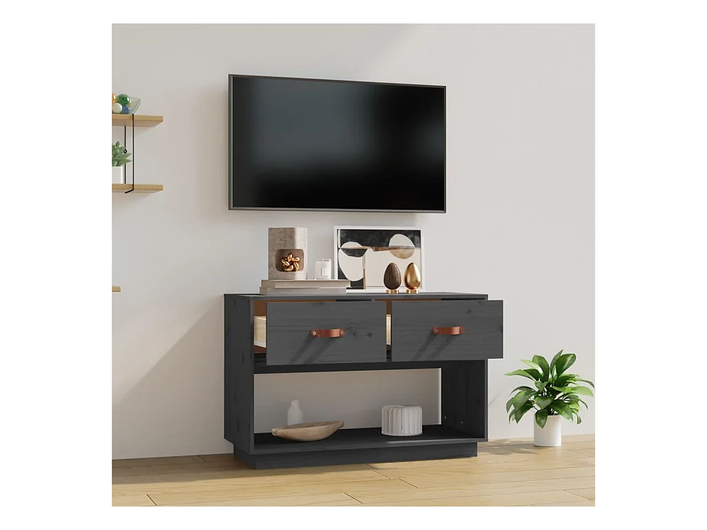 TV-Schrank,TV-Möbel Grau 90x40x60 cm Massivholz Kiefer -gkd65516