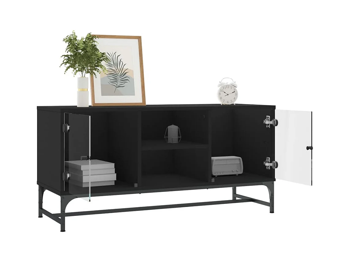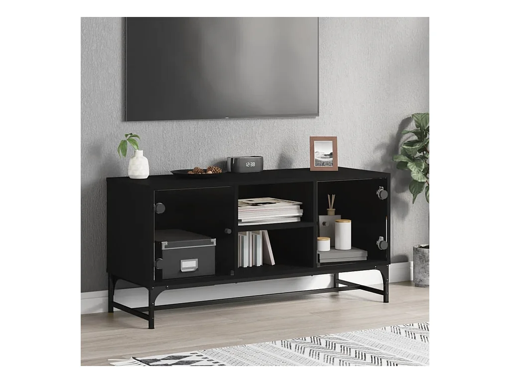TV-Schrank,TV-Möbel mit Glastüren Schwarz 102x37x50 cm -gkd600451