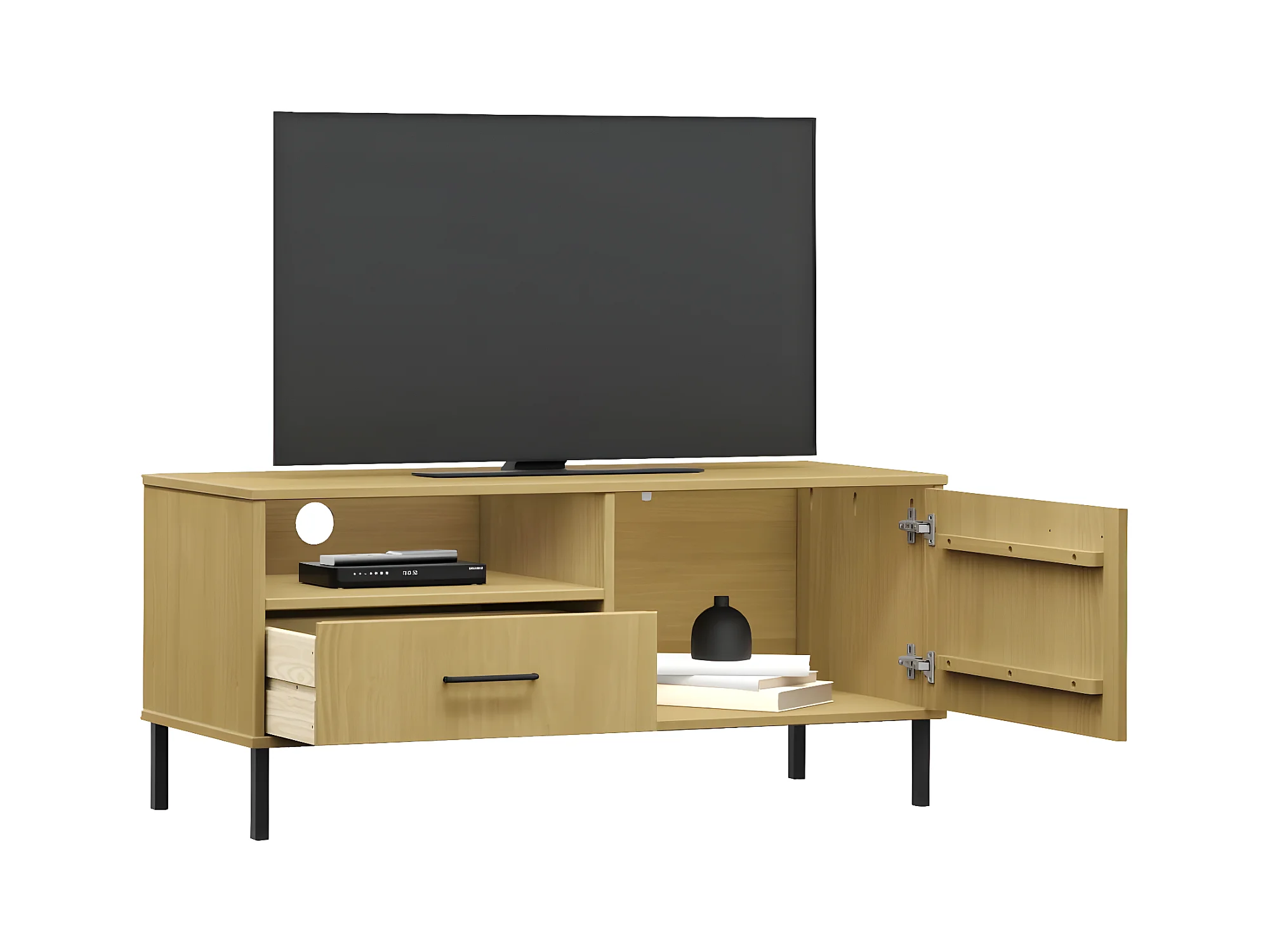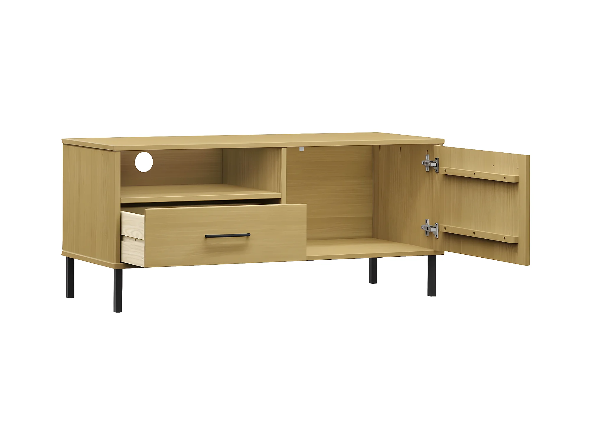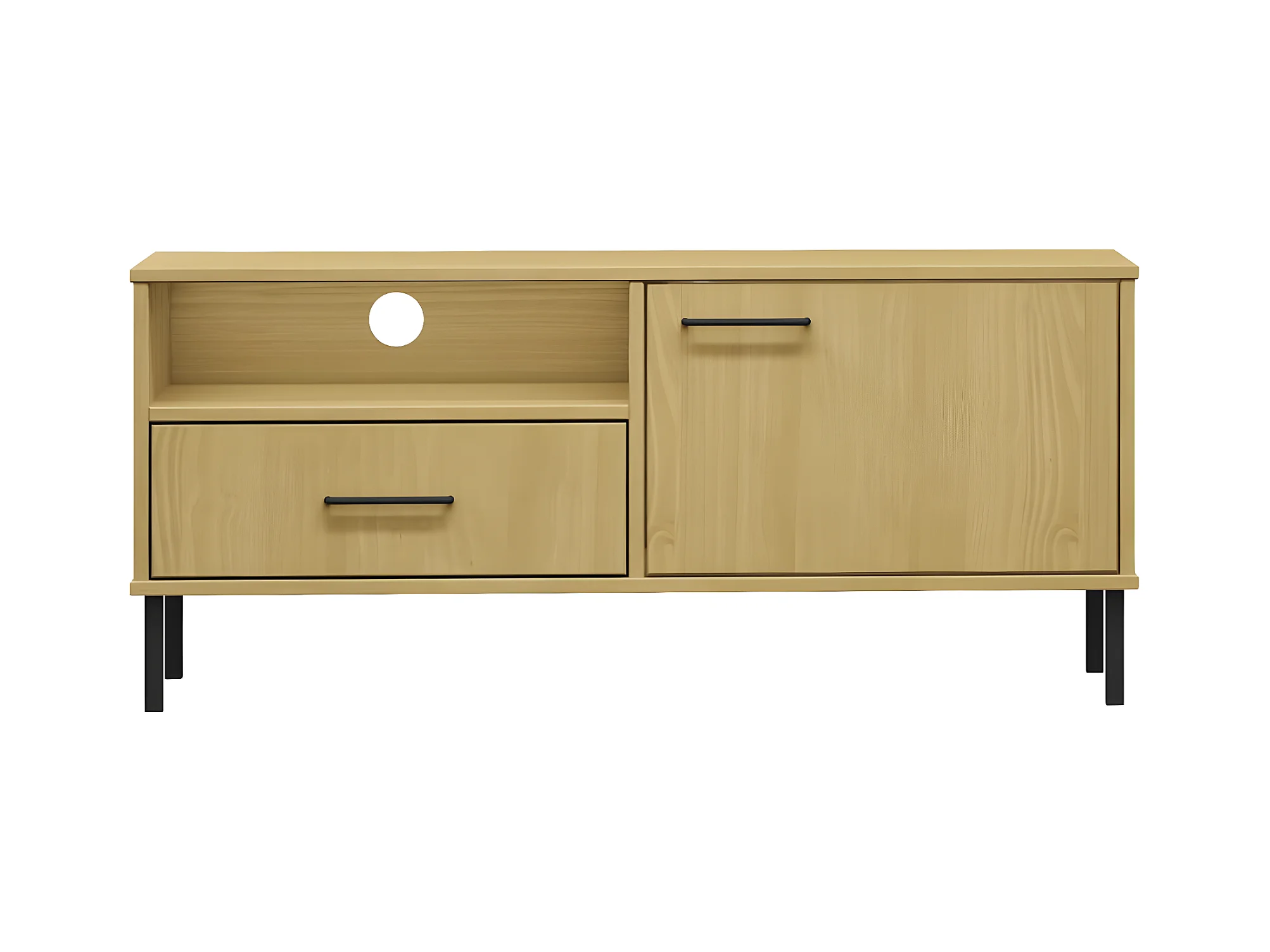 TV-Schrank,TV-Möbel OSLO mit Metallbeinen Braun Massivholz Kiefer -gkd798273
