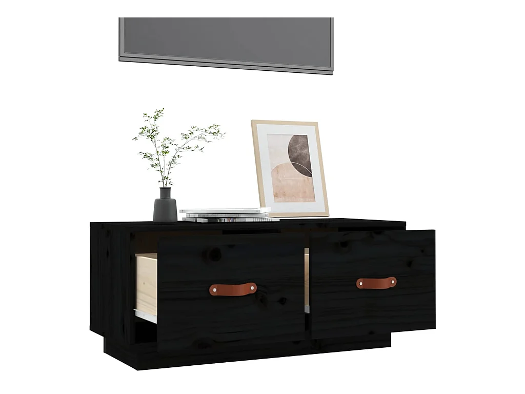 TV-Schrank,TV-Möbel Schwarz 80x34x35 cm Massivholz Kiefer -gkd452270