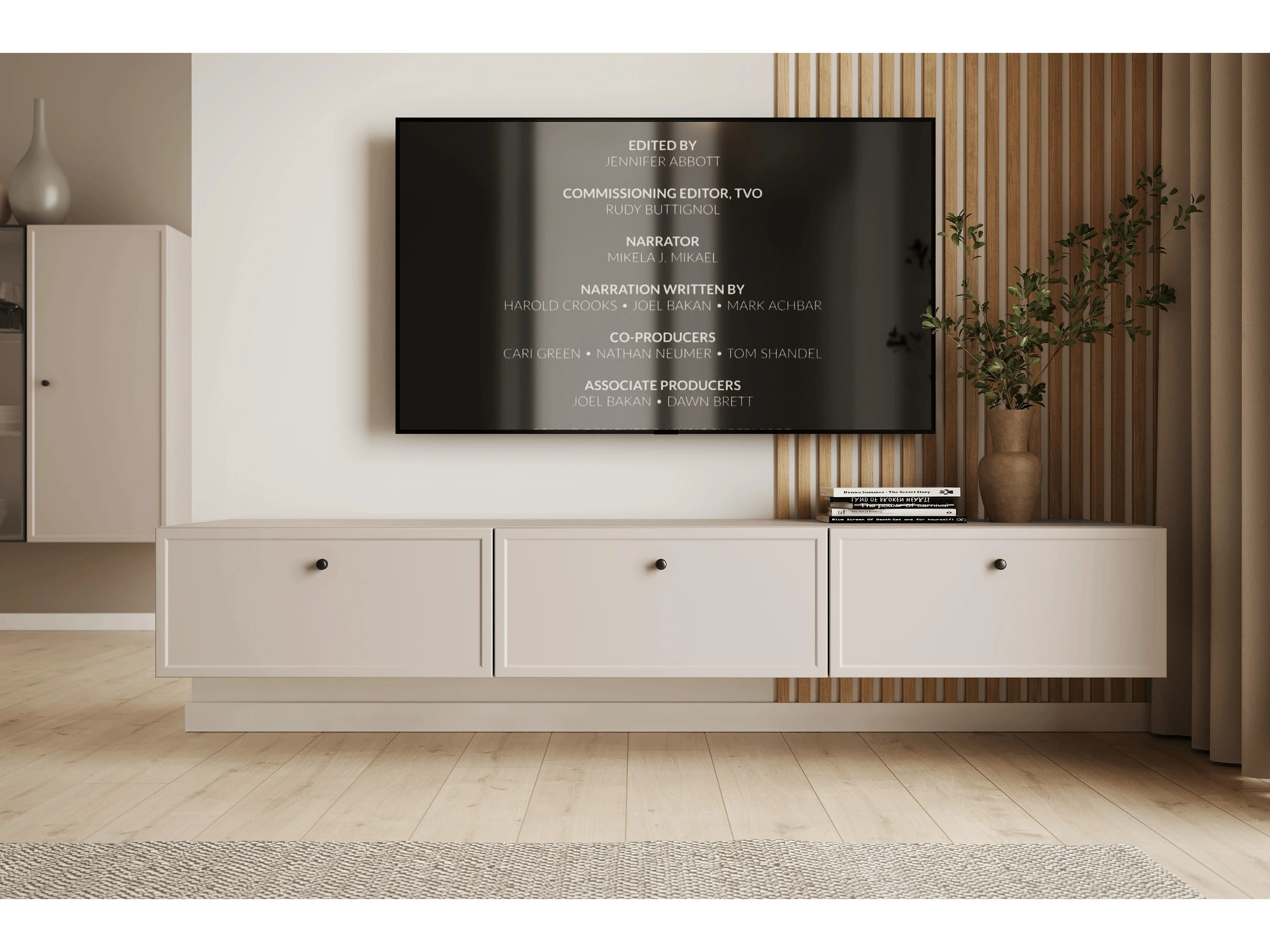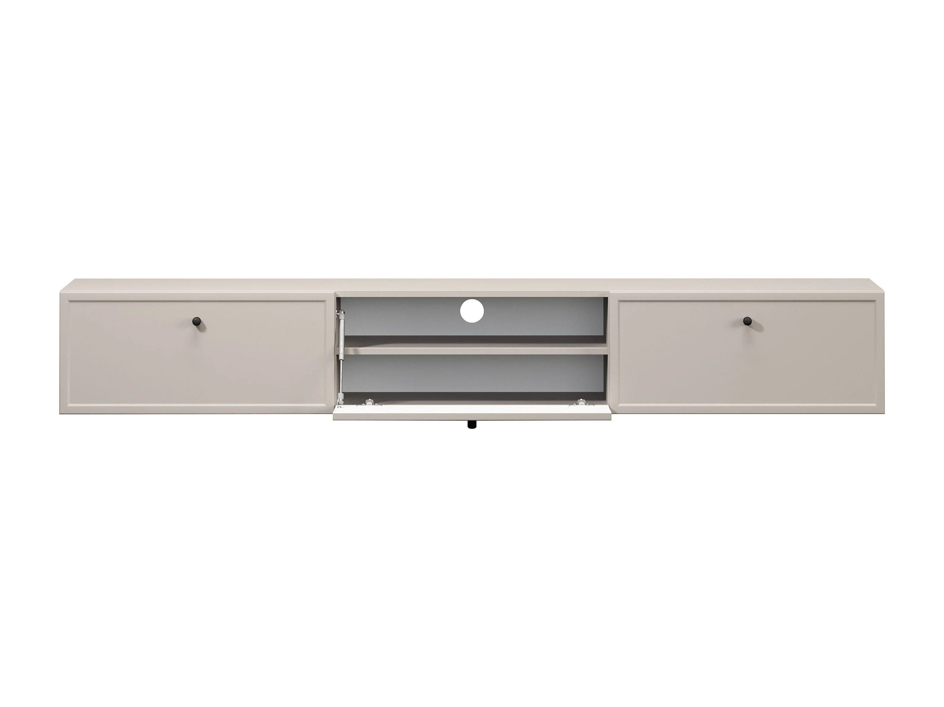TV-Ständer aus Kaschmir mit 1 Tür und 2 Schubladen, schwarzen Griffen, 200 x 45 cm