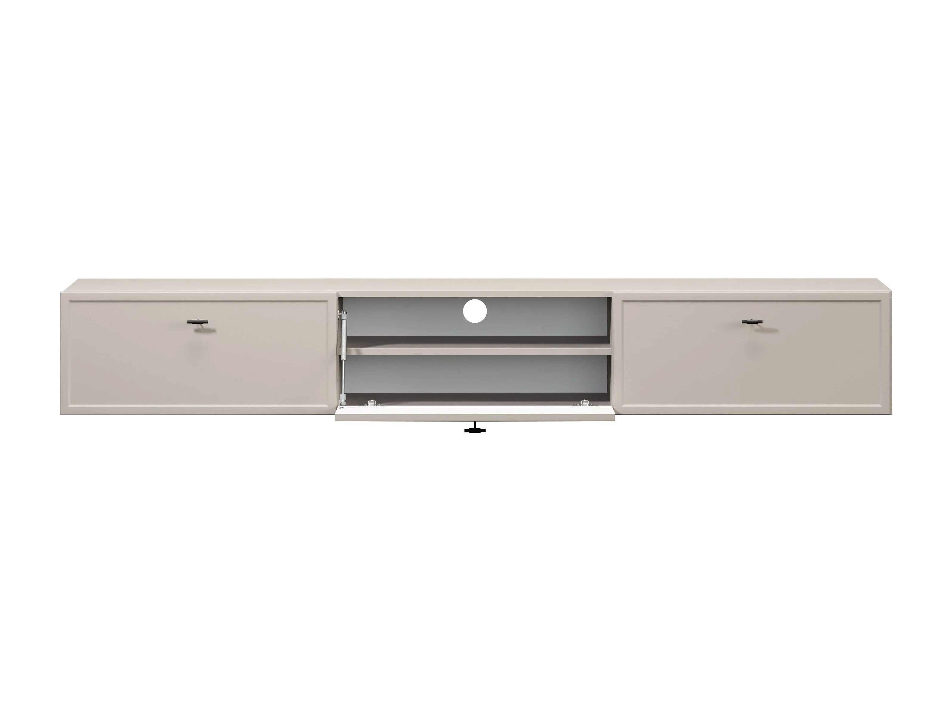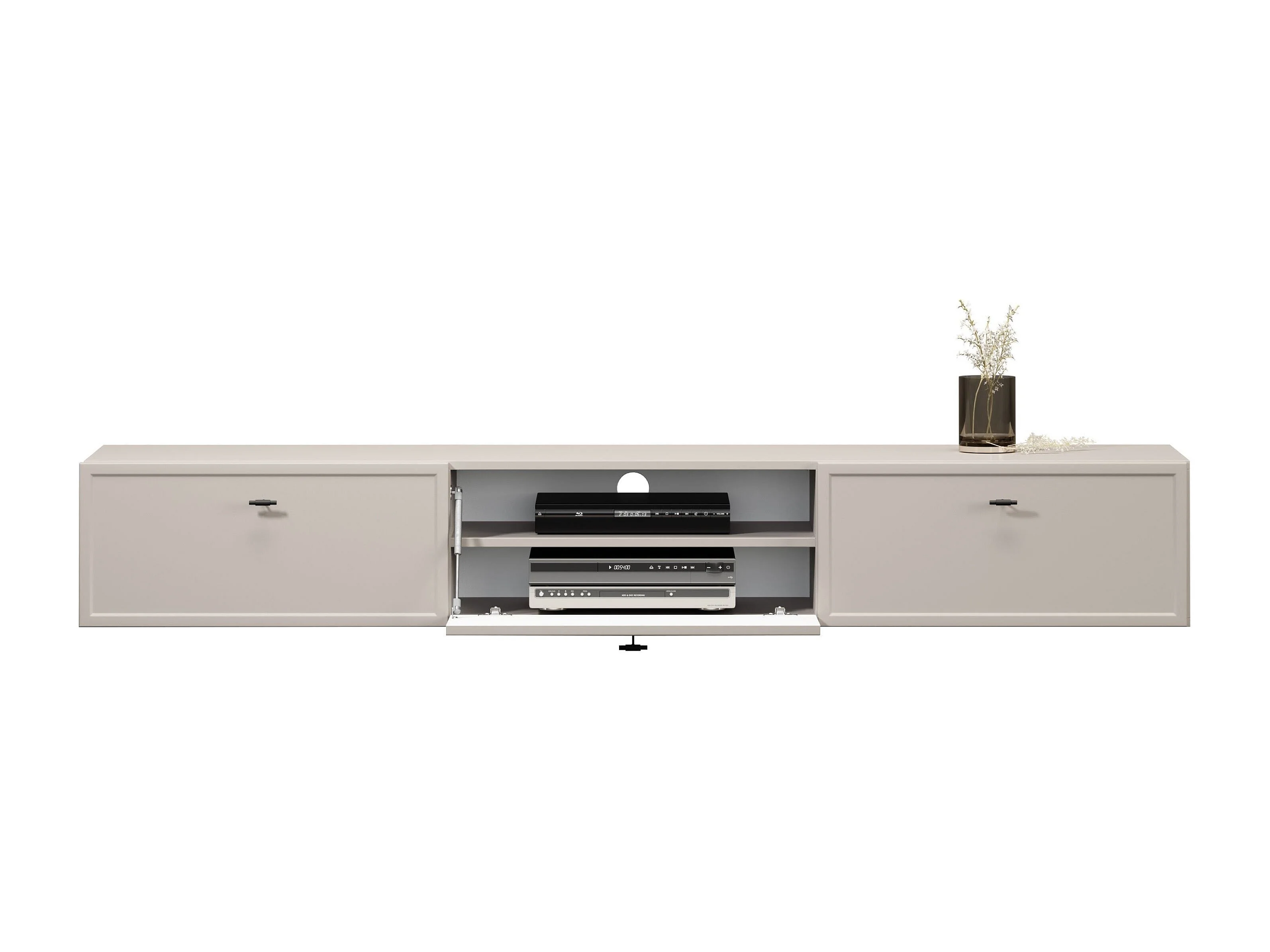 TV-Ständer aus Kaschmir mit 1 Tür und 2 Schubladen, schwarzen Griffen, 200 x 45 cm