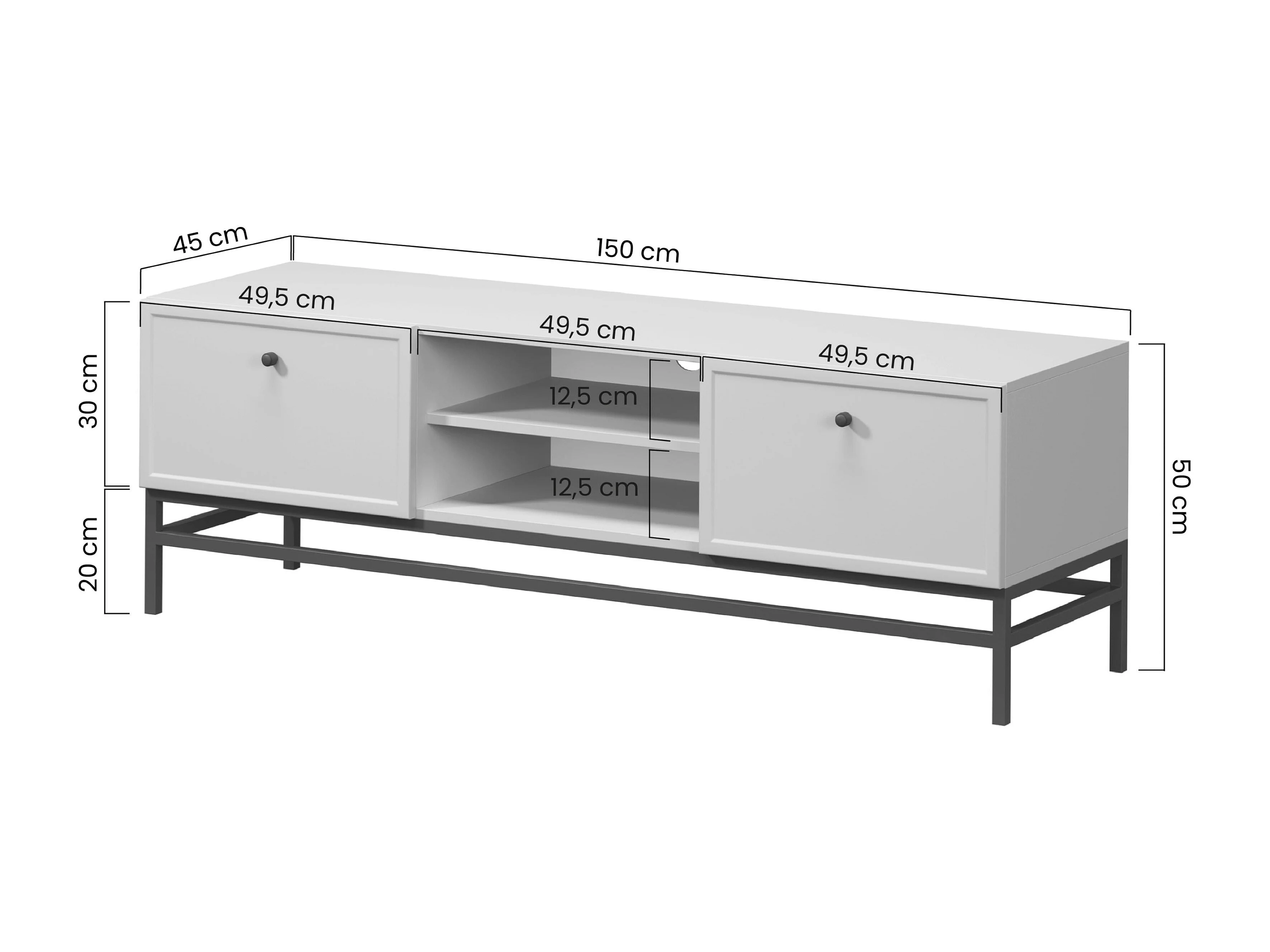 TV-Ständer aus Kaschmir mit 2 Schubladen und schwarzen Griffen, 150 x 45 cm