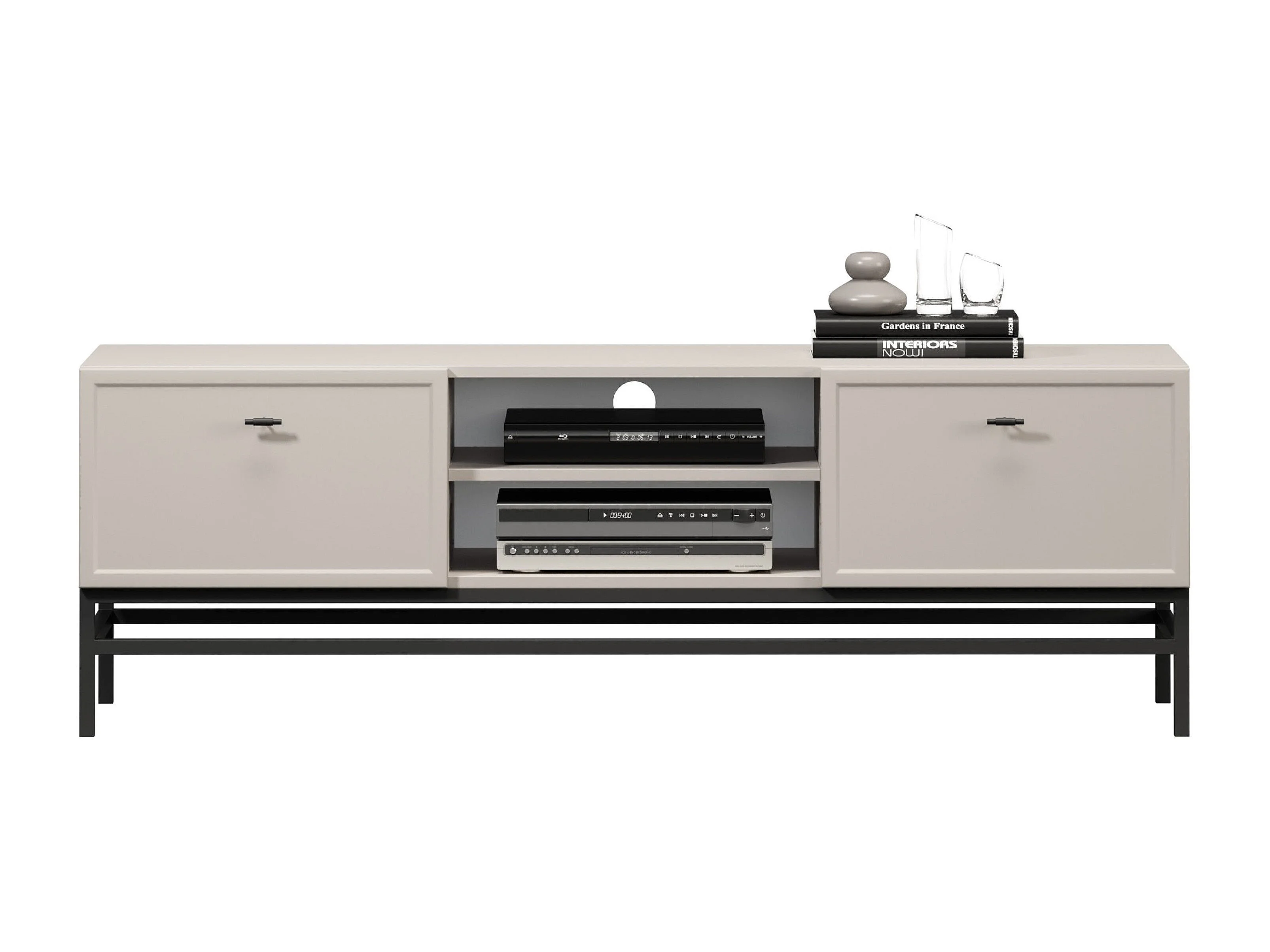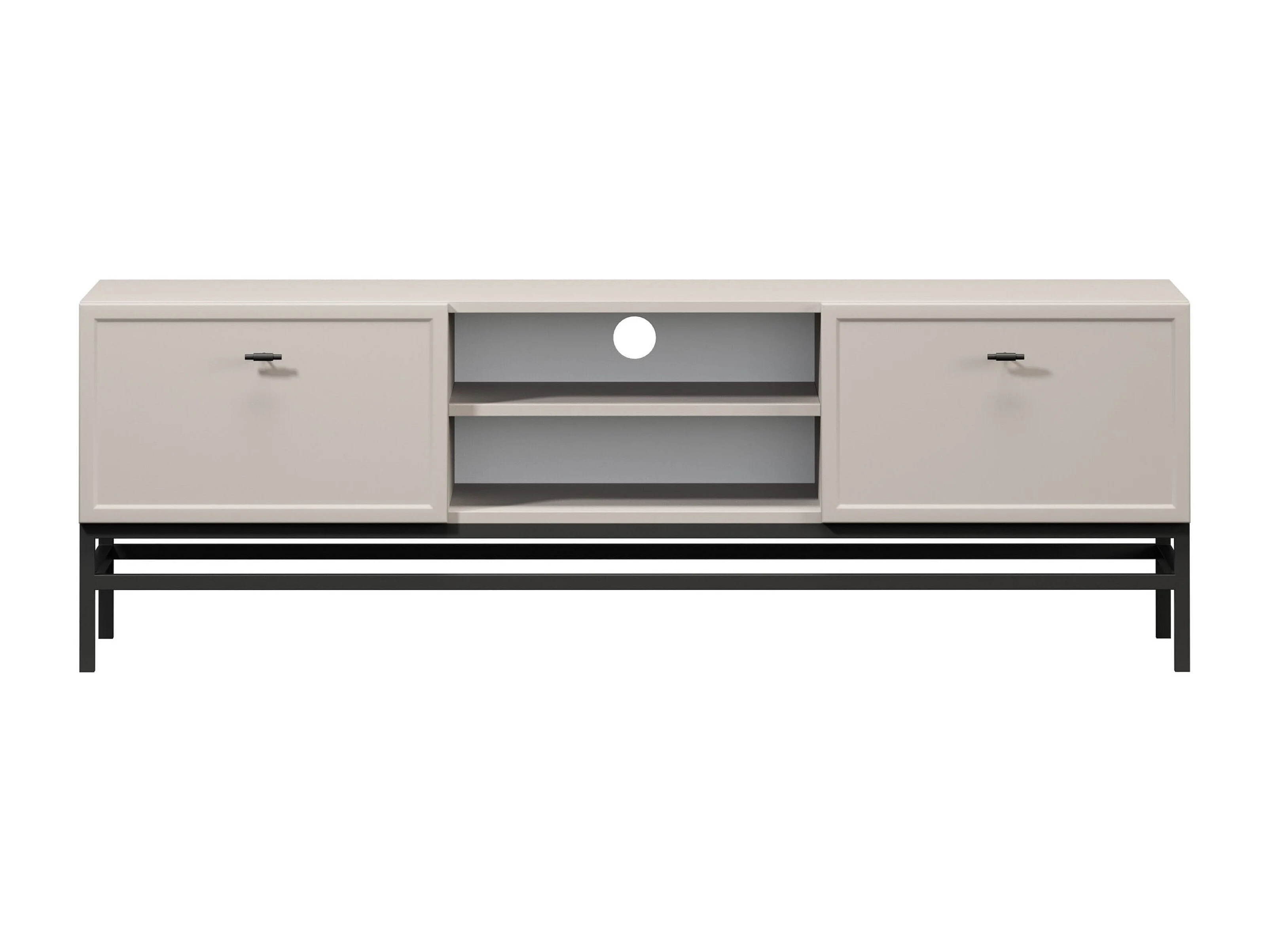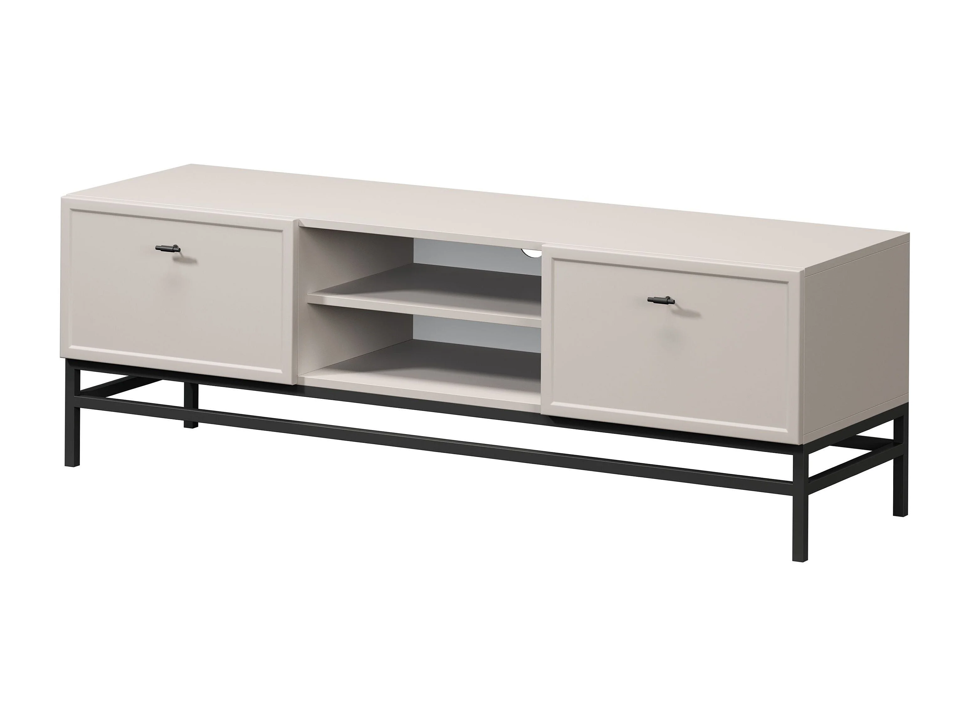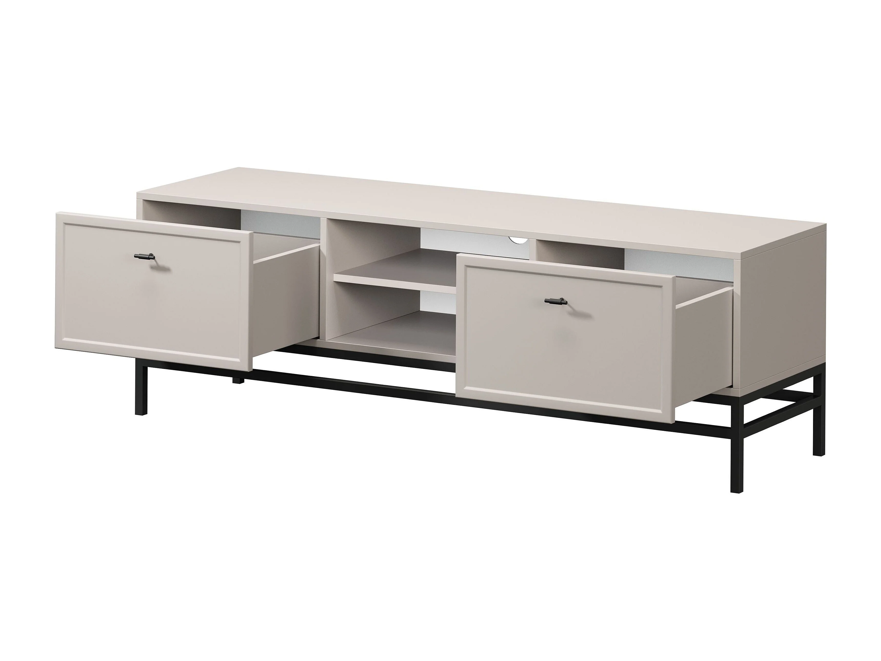 TV-Ständer aus Kaschmir mit 2 Schubladen und schwarzen Griffen, 150 x 45 cm