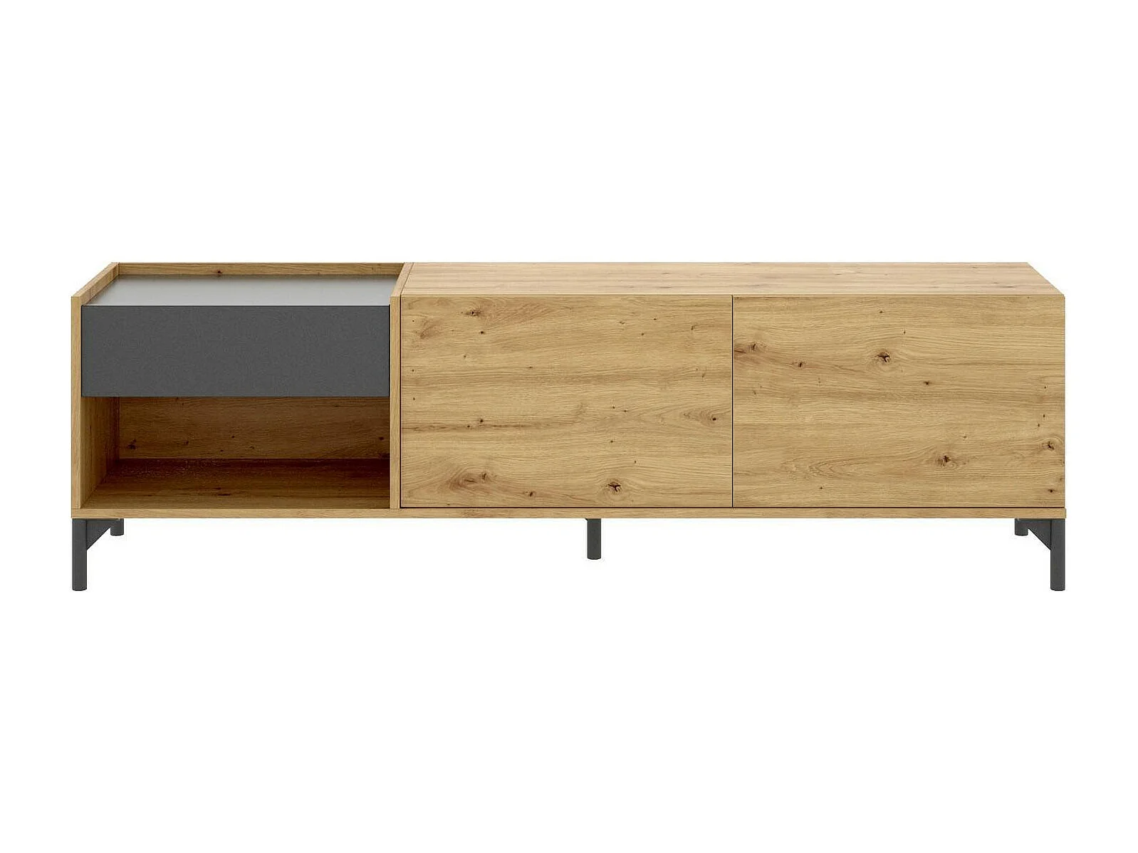 TV-Ständer Dpandu, niedriges Sideboard für Wohnzimmer, Sideboard für Wohnzimmer für Fernseher, 164 x 39 x 49 cm, Eiche Nodes und Anthrazit