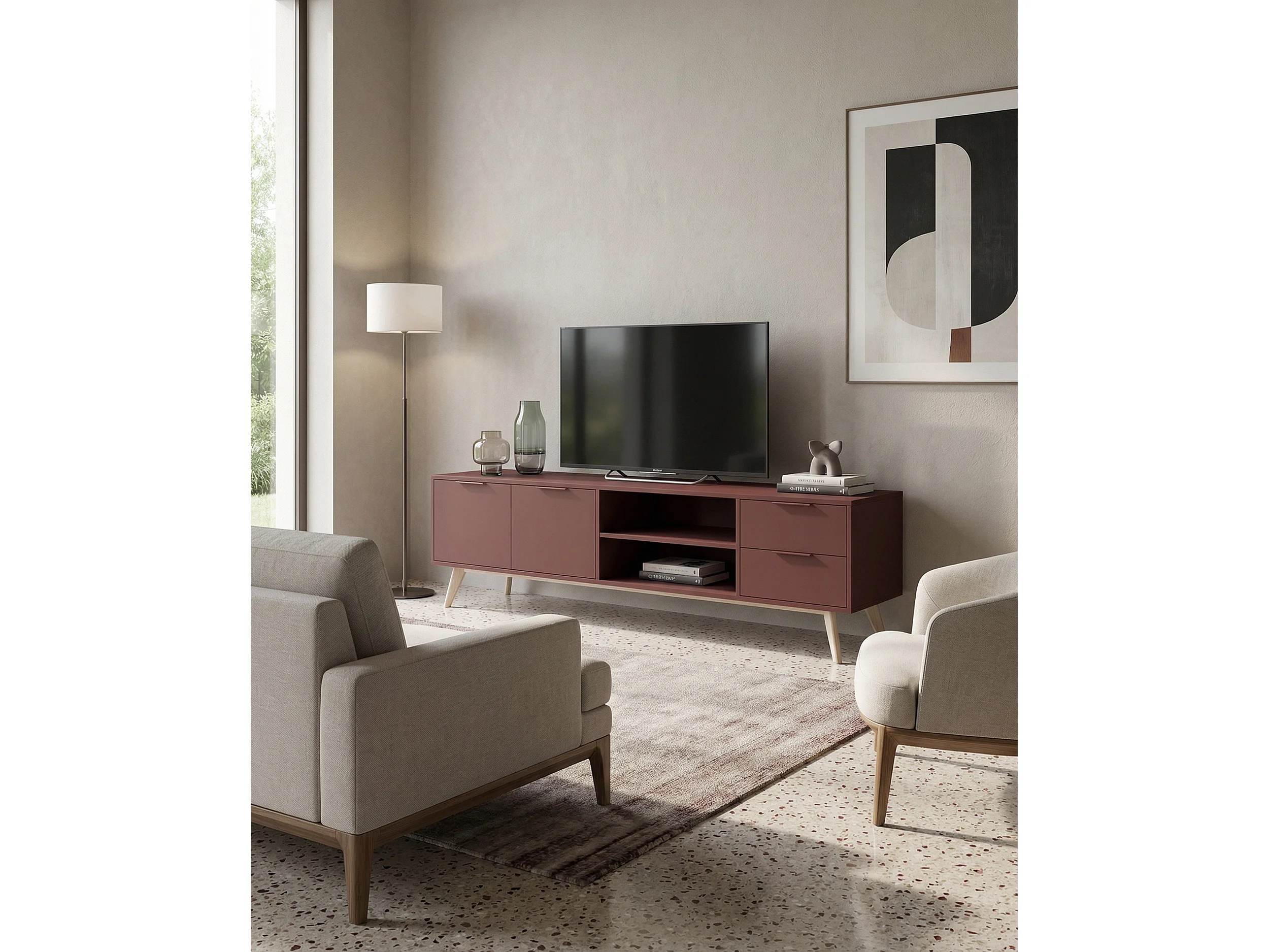 TV-Ständer Kiefernholz 2 Türen 2 Schubladen 180x53 cm
