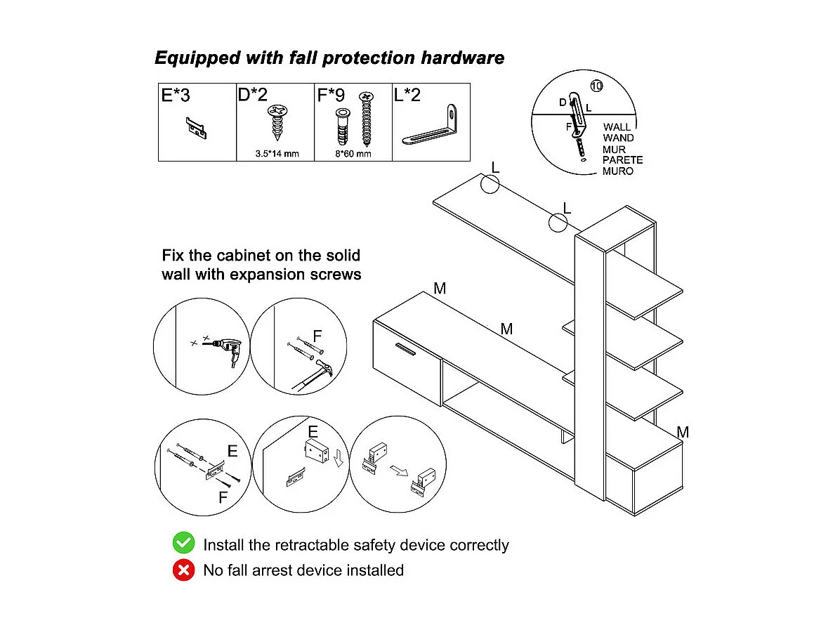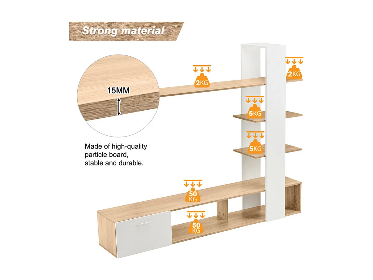 TV-Wand - mit Anti-Kippvorrichtungen - Für TV unter 60 Zoll - 180x33,5x151,5cm