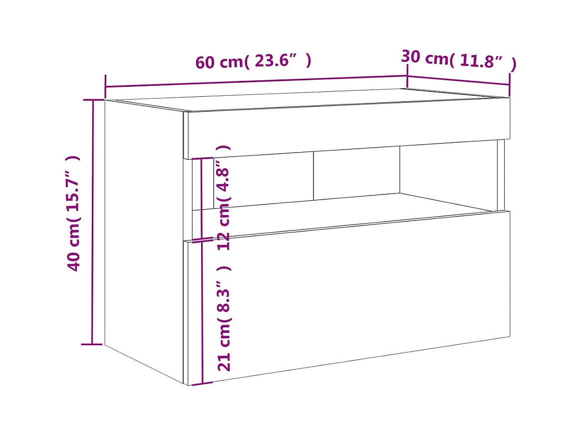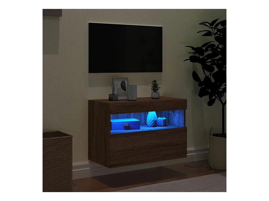 TV-Wandschrank mit LED-Leuchten Braun Eichen-Optik 60x30x40 cm