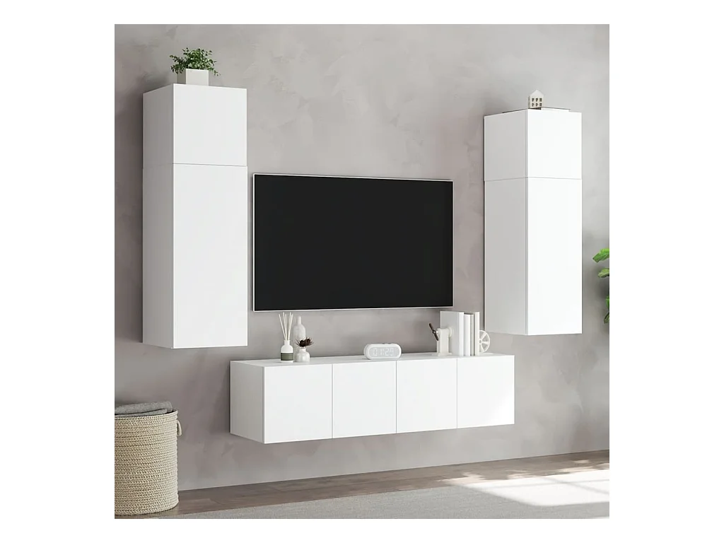 TV-Wandschrank mit LED-Leuchten Weiß 80x35x31 cm