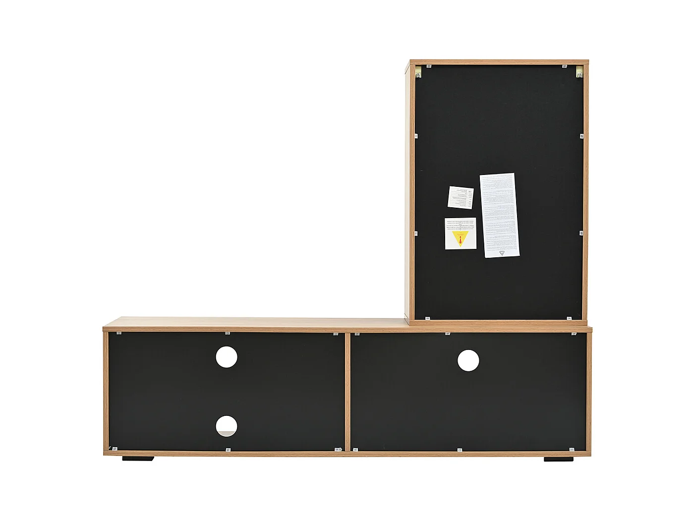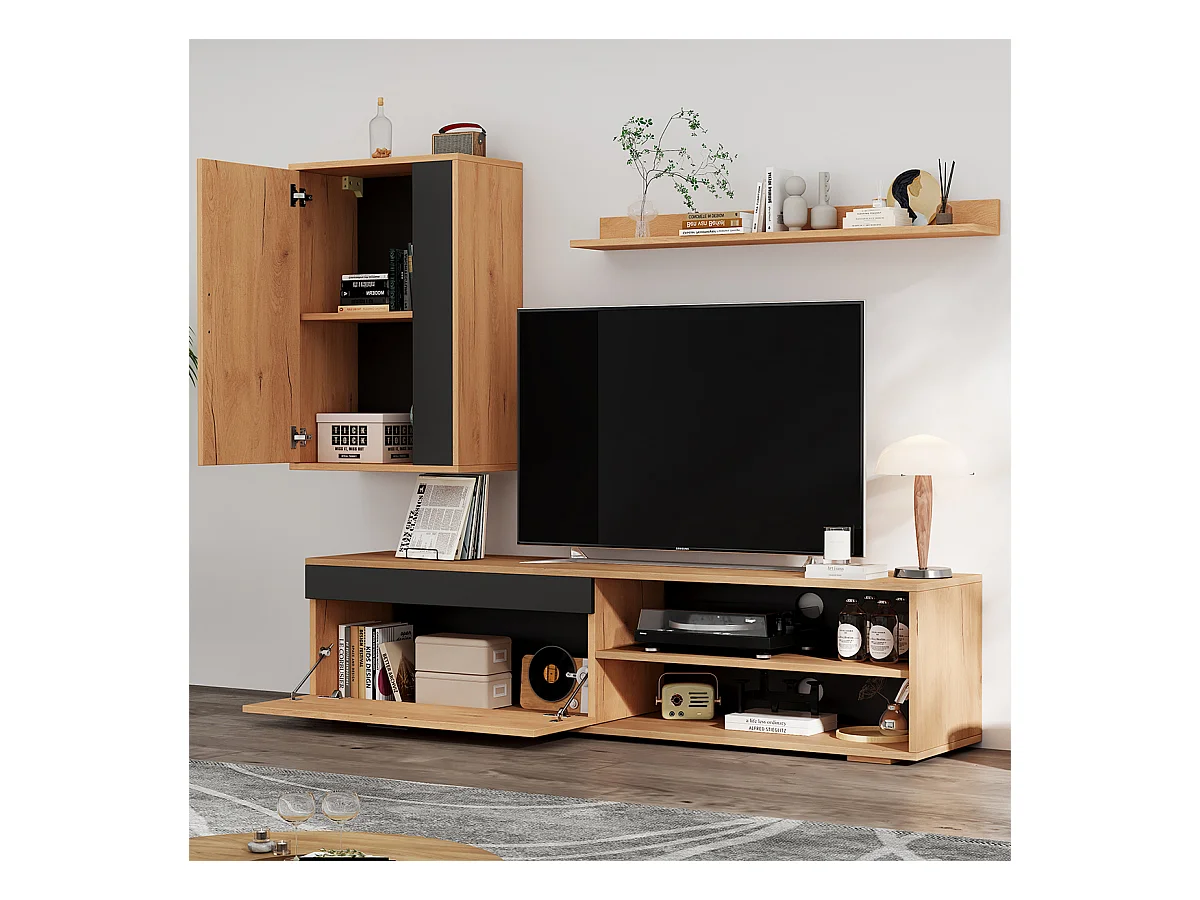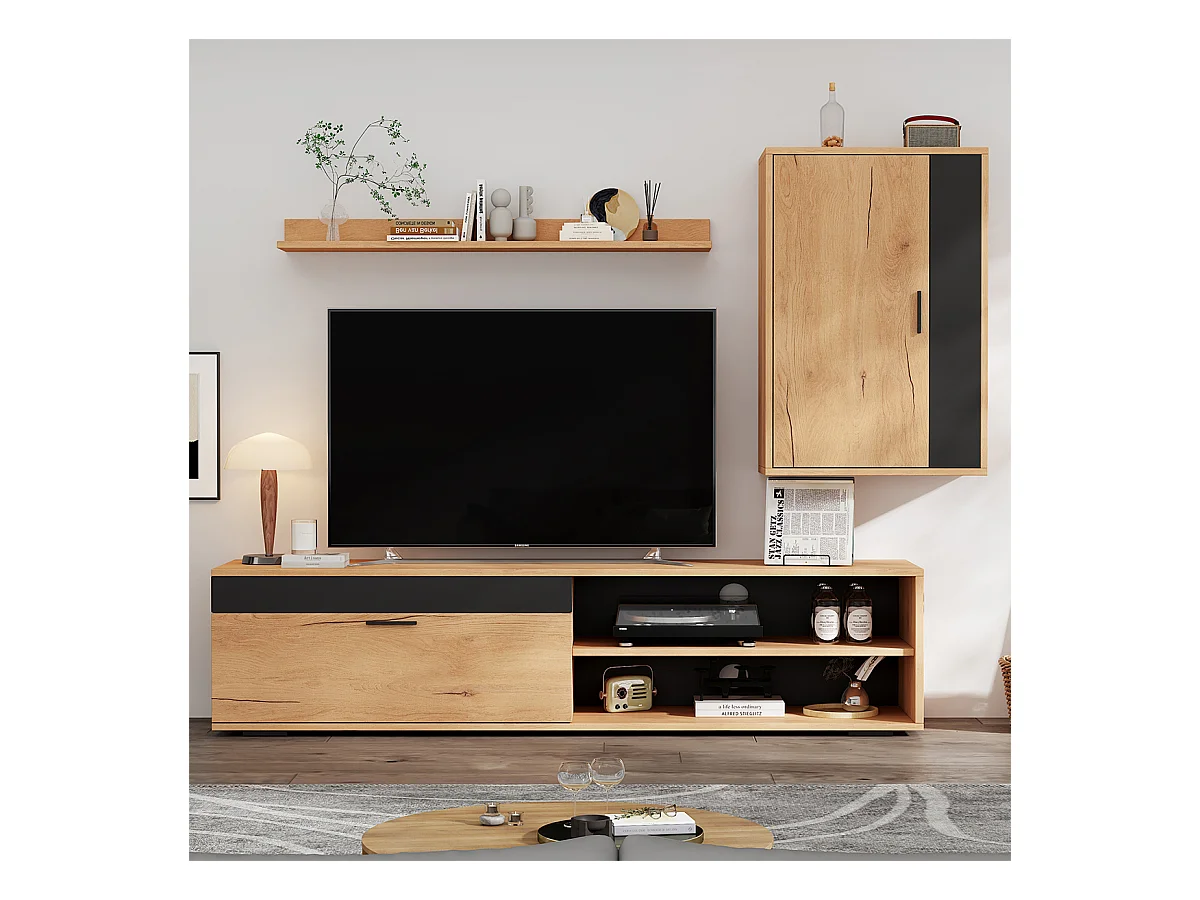 TV Wohnwand-set inkl.TV-Board Standregal und Wandregal TV Wohnzimmermöbel-Set 140*35*39cm Holzfarbe + Schwarz