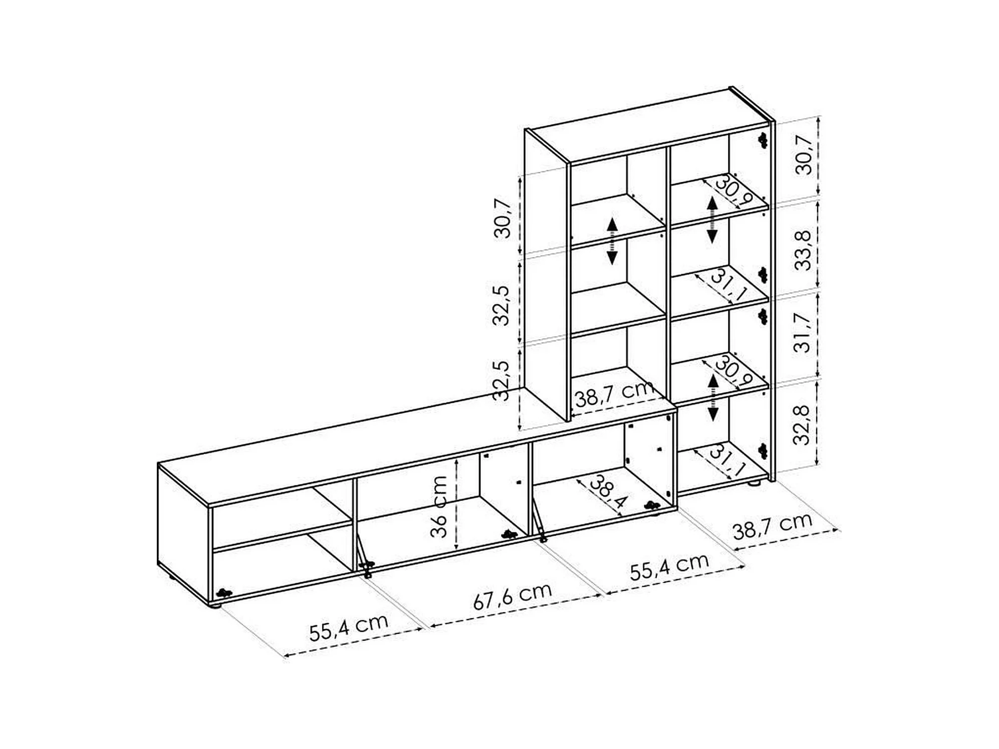 TVWandeinheit – CraftsmanEiche und mattweißes Melamin – 3 Türen – 227 x 42 x 141 cm