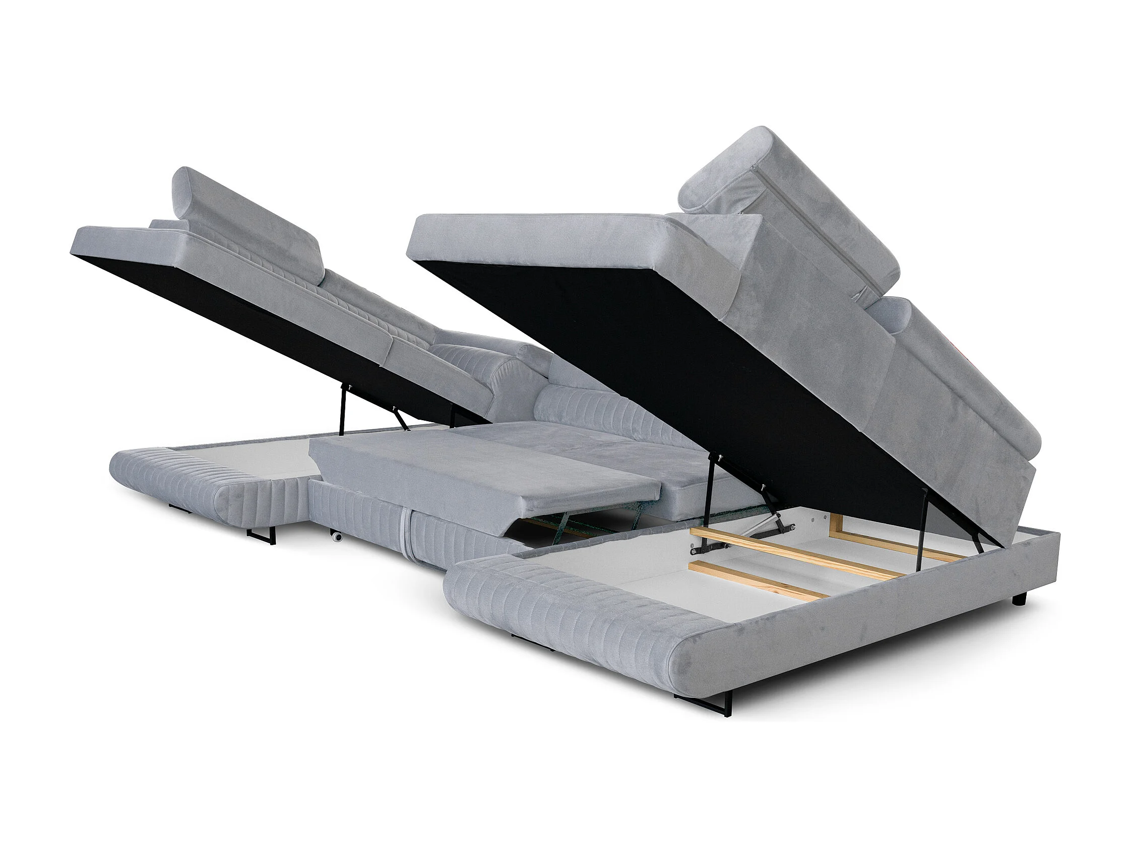 U-Form Schlafsofa Magnum Hellgrau 345x202 cm – Flexibles Design ohne feste Seite