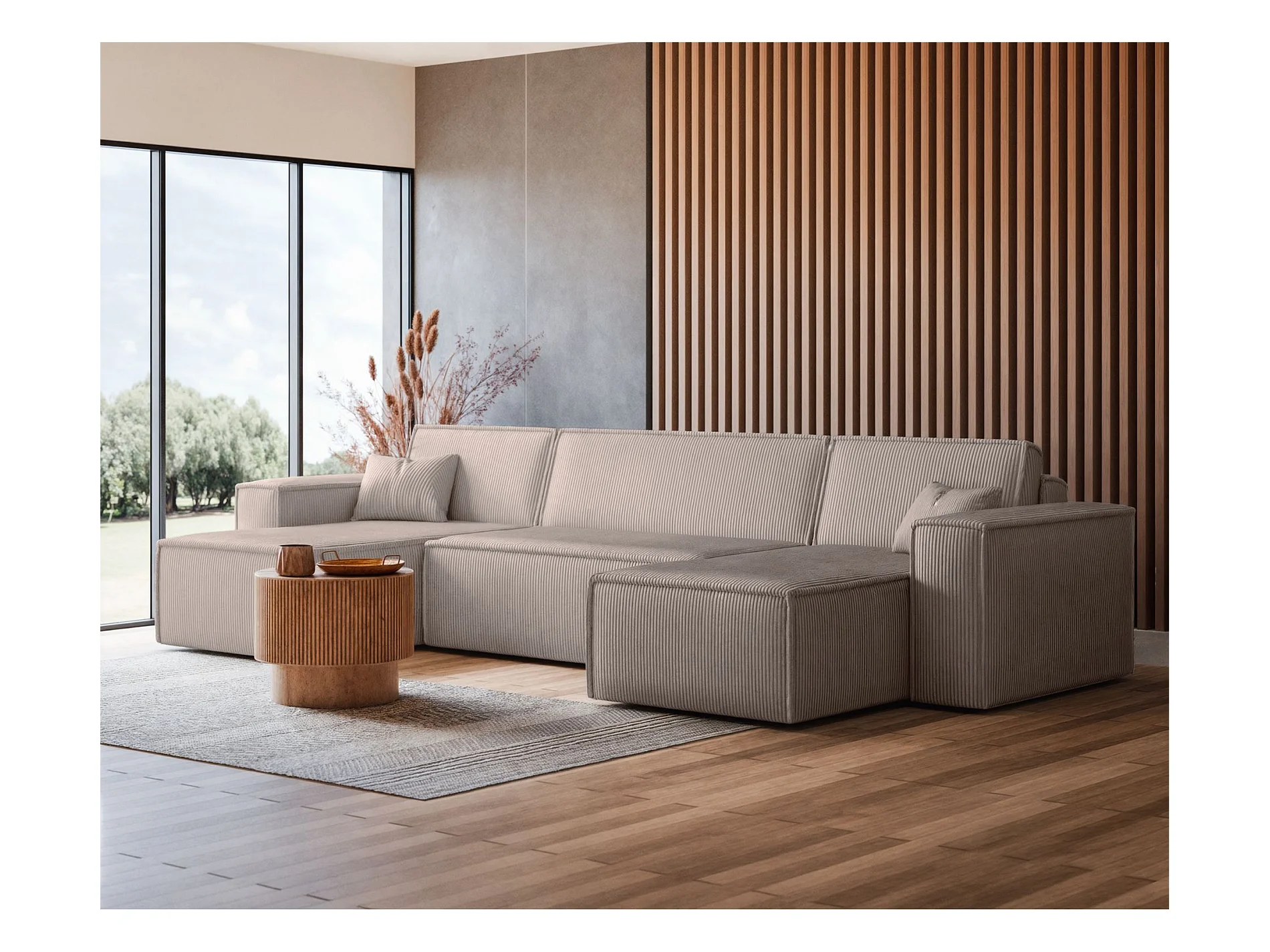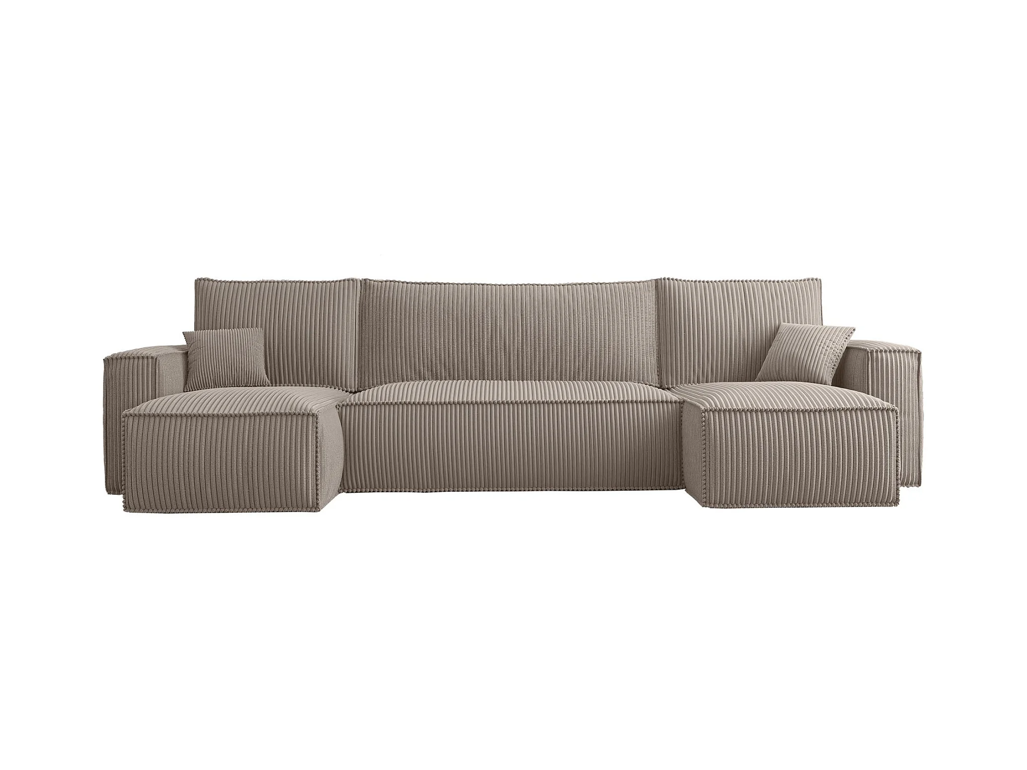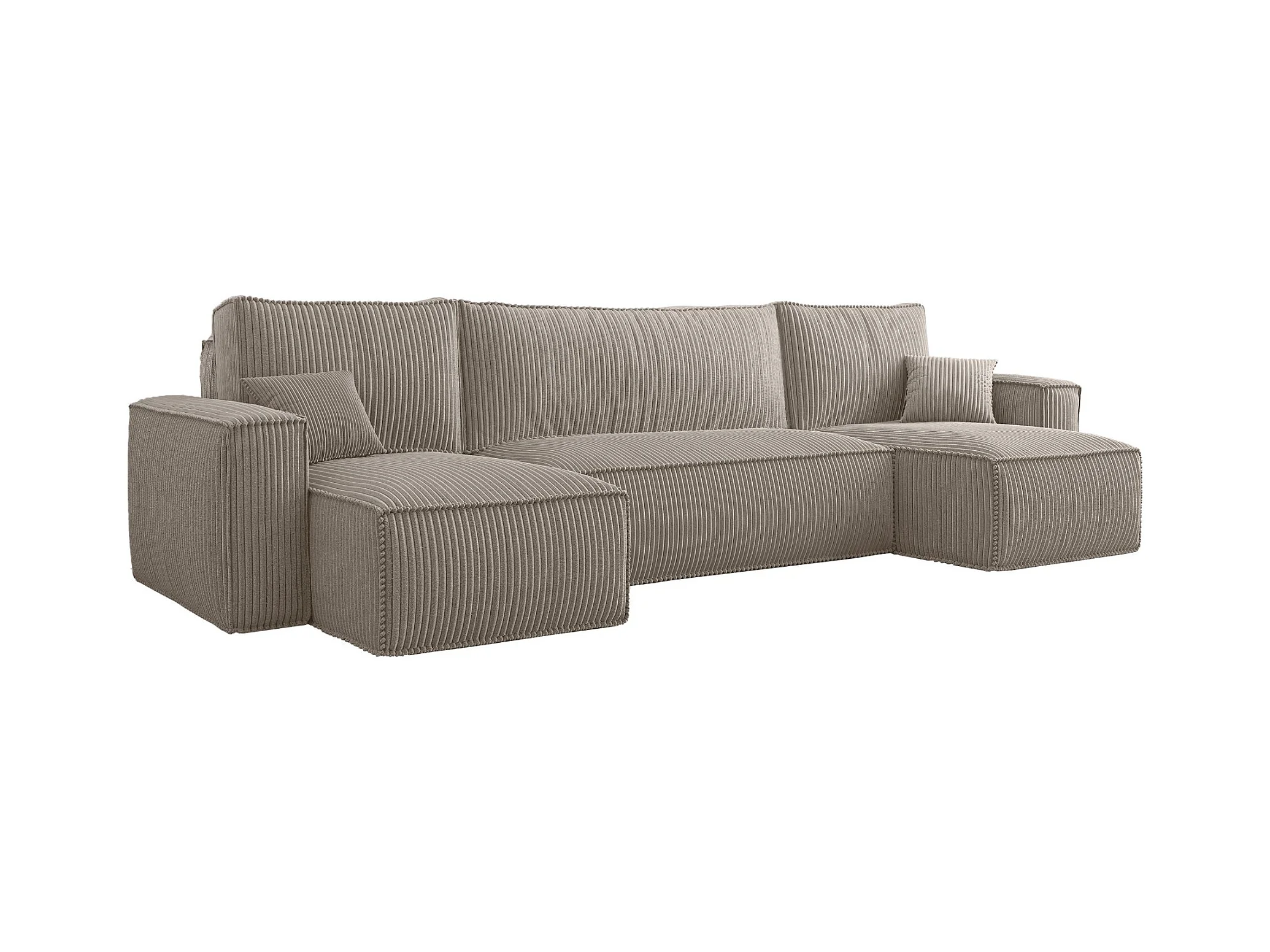 U-Form-Sofa mit Schlaffunktion - Cordbezug in Beige - SCARLO U