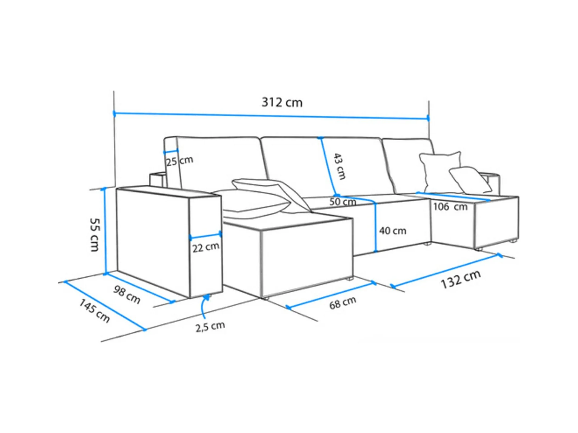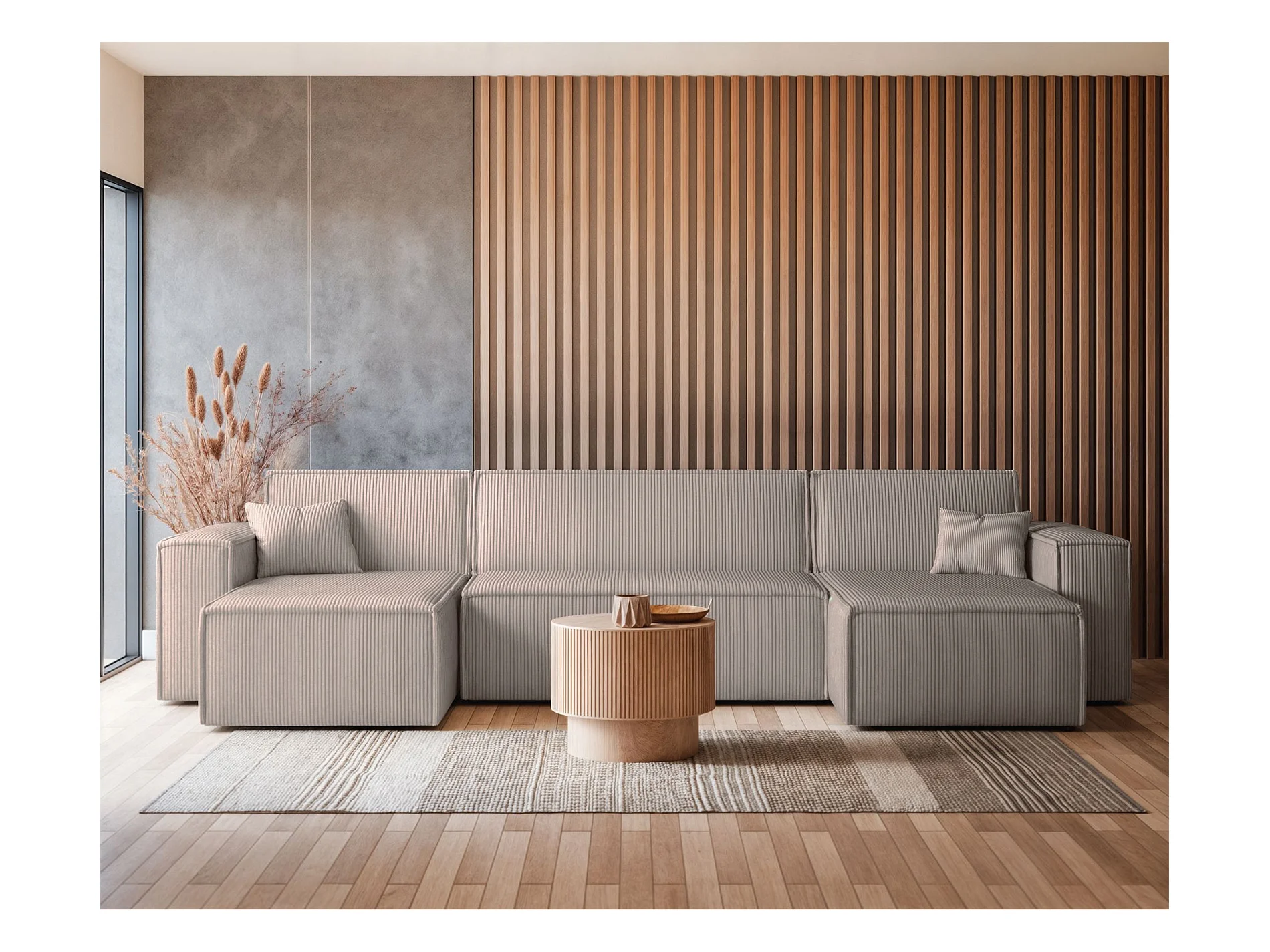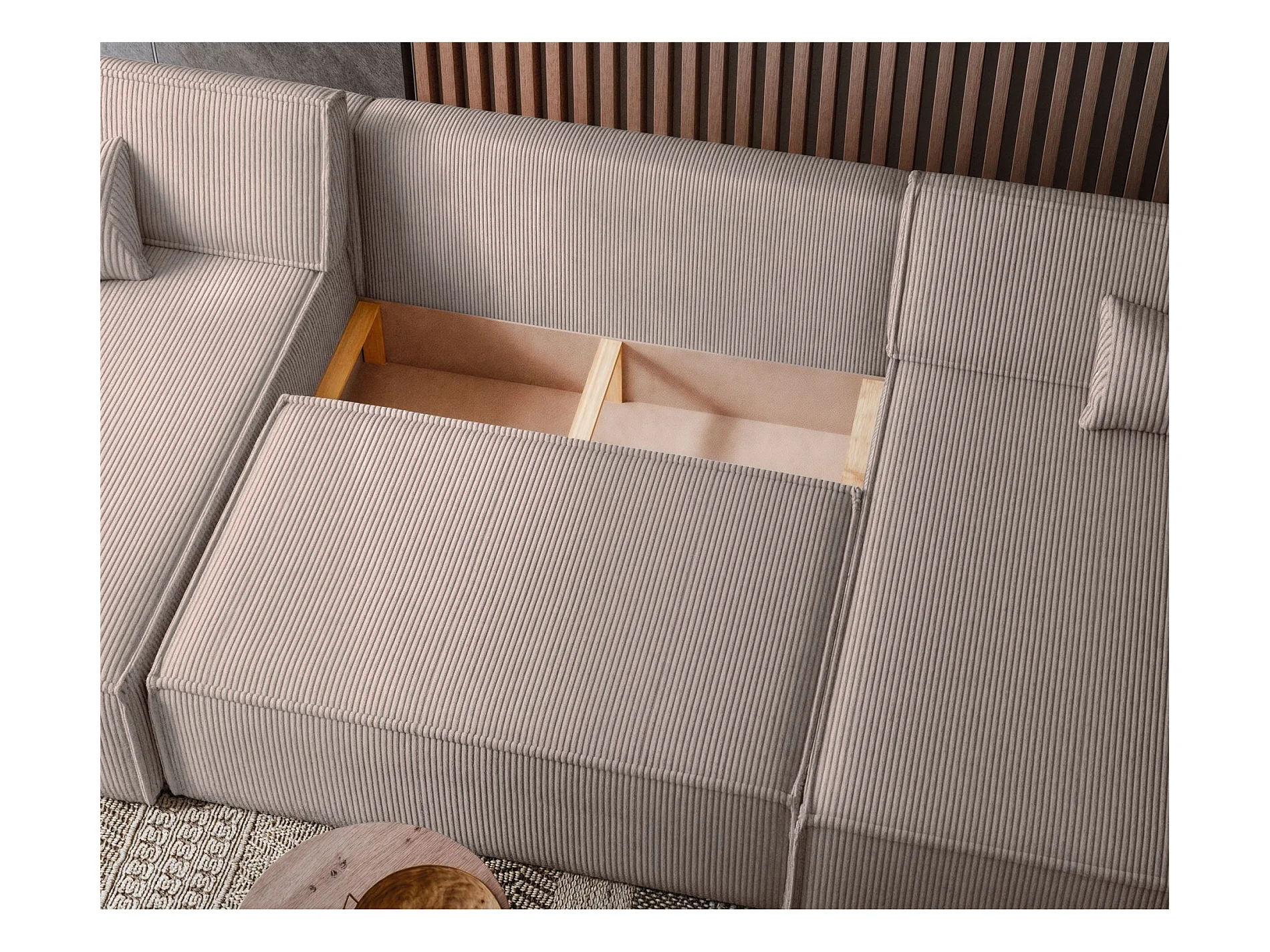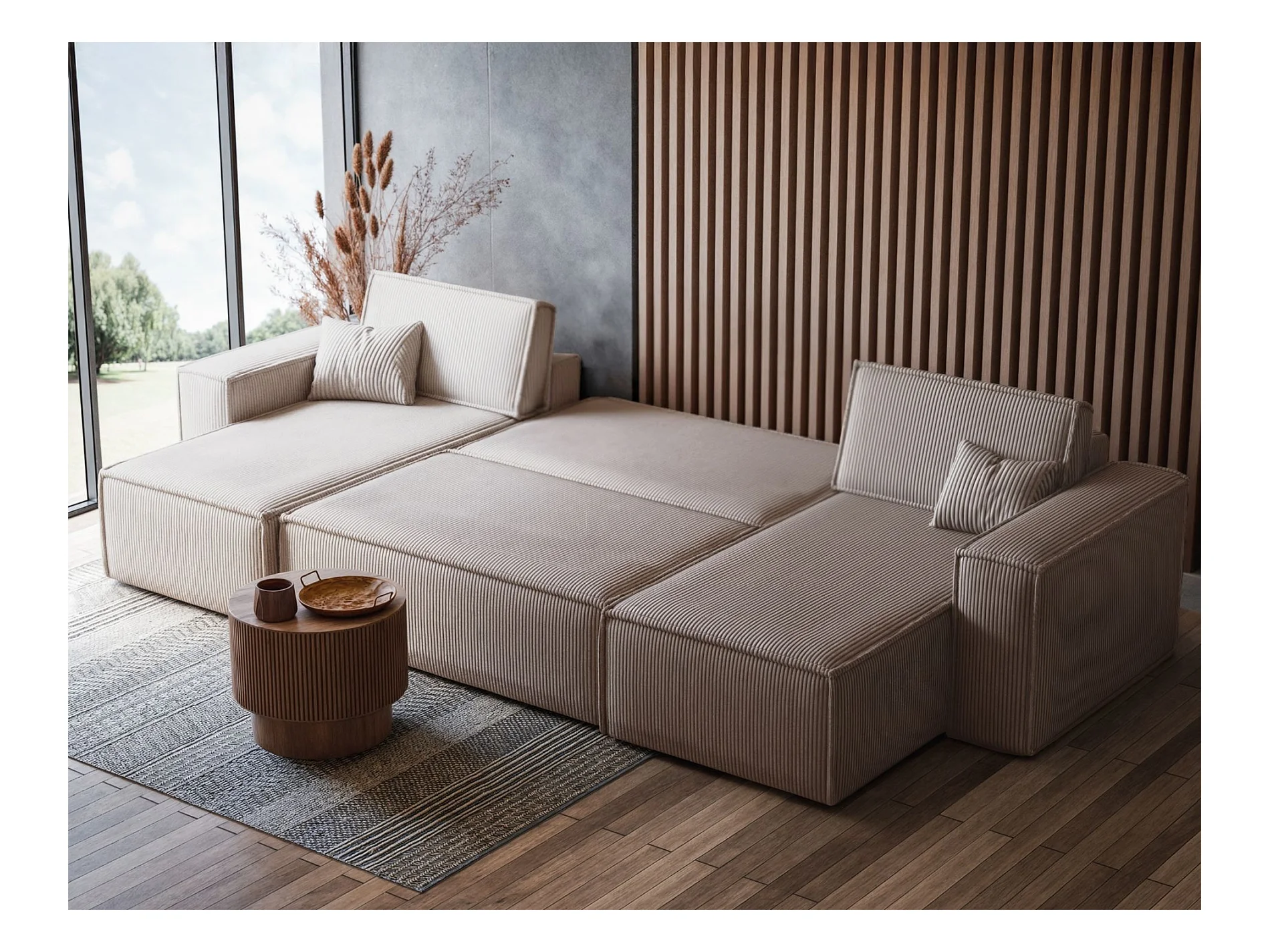 U-Form-Sofa mit Schlaffunktion - Cordbezug in Beige - SCARLO U