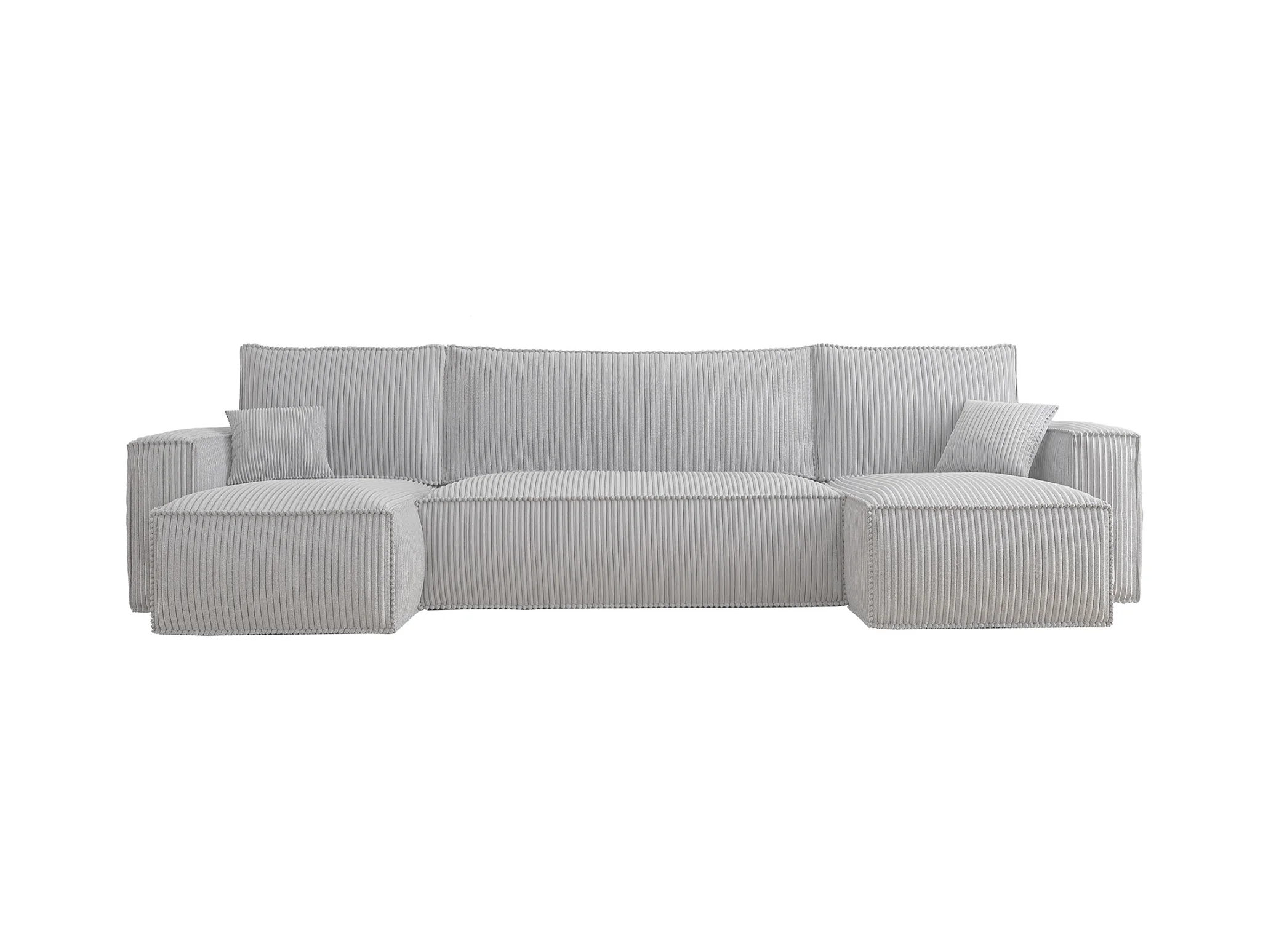 U-Form-Sofa mit Schlaffunktion - Cordbezug in Hellgrau - SCARLO U