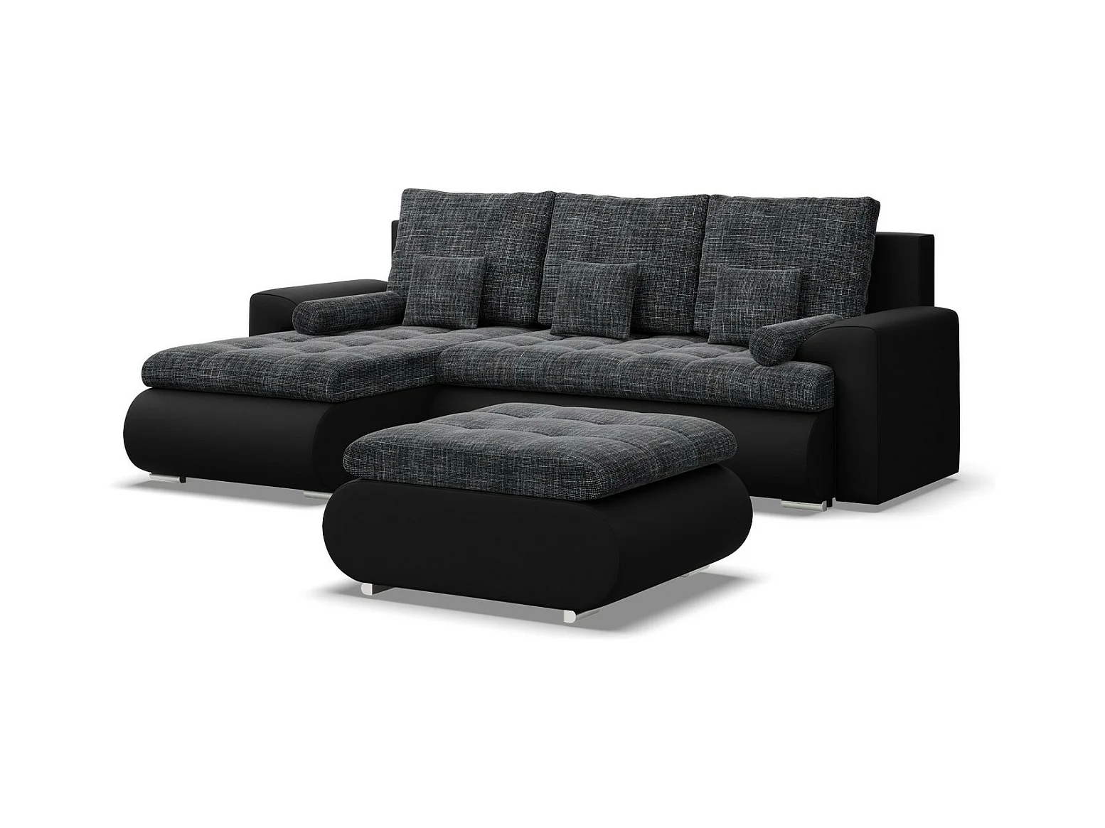 U-Sofa mit Schlaffunktion, Ottomane, Cord - Beige