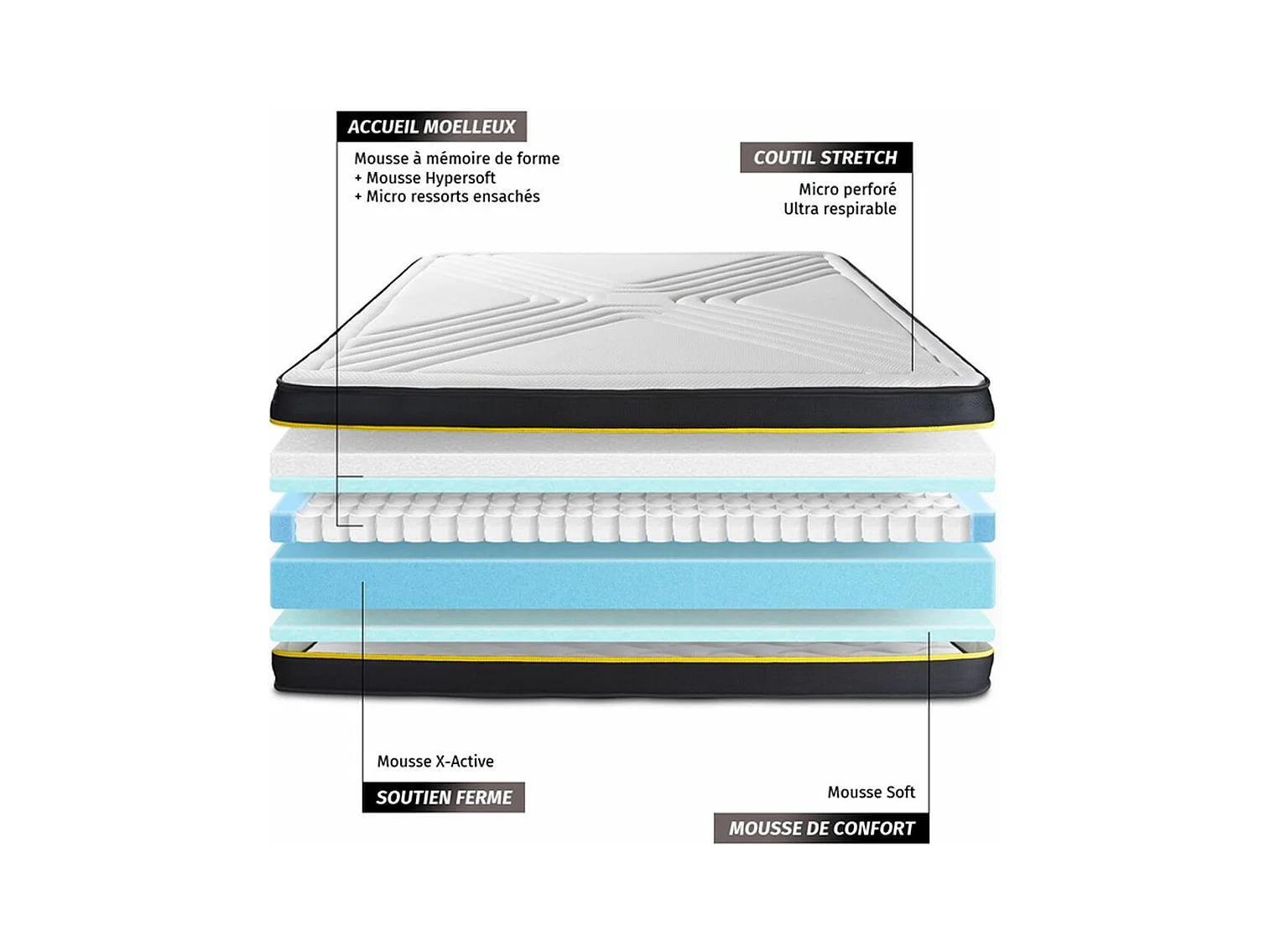 ULTRA Matratze 100x190cm, Memory-Schaum und Mikro-Taschenfedern, Härtegrad 2, Höhe: 26cm, 7 Komfortzonen