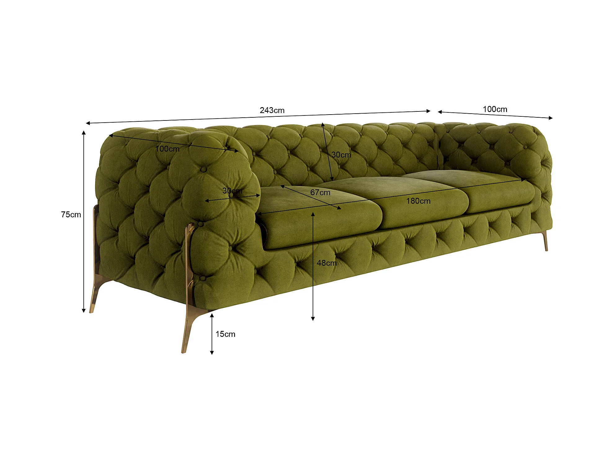 Ulysses 3-Sitzer Chesterfield Sofa mit Goldene Metall Füßen