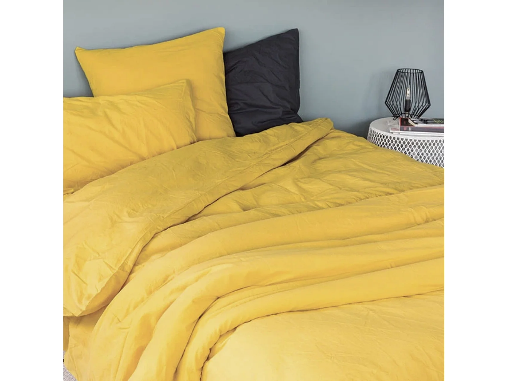 Unifarbenes Bettbezug-Set aus gewaschener Baumwolle 140 x 200 cm