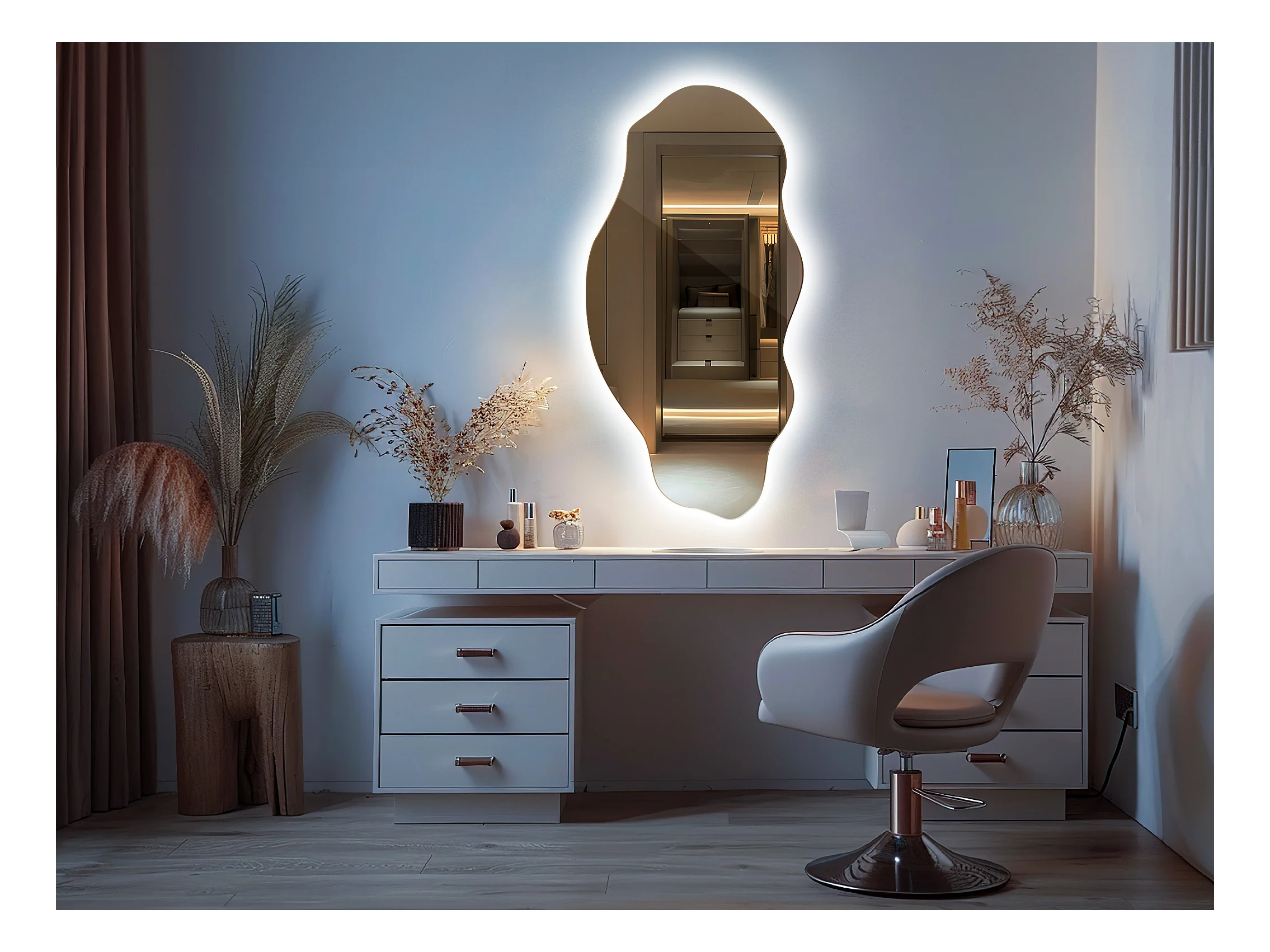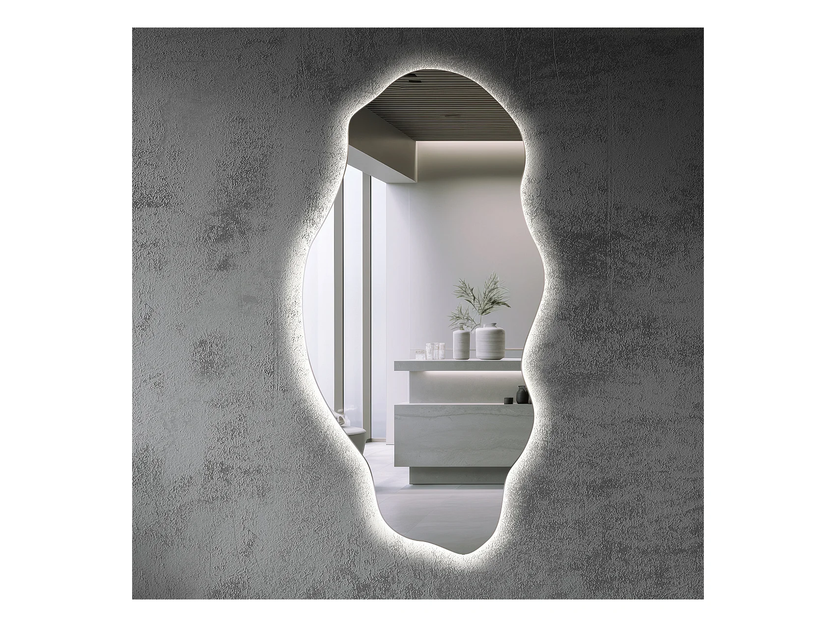 Unregelmäßiger organischer kalter LED-Lichtspiegel für Badezimmer und Wohnzimmer, 50 cm x 100 cm – kaltes Licht