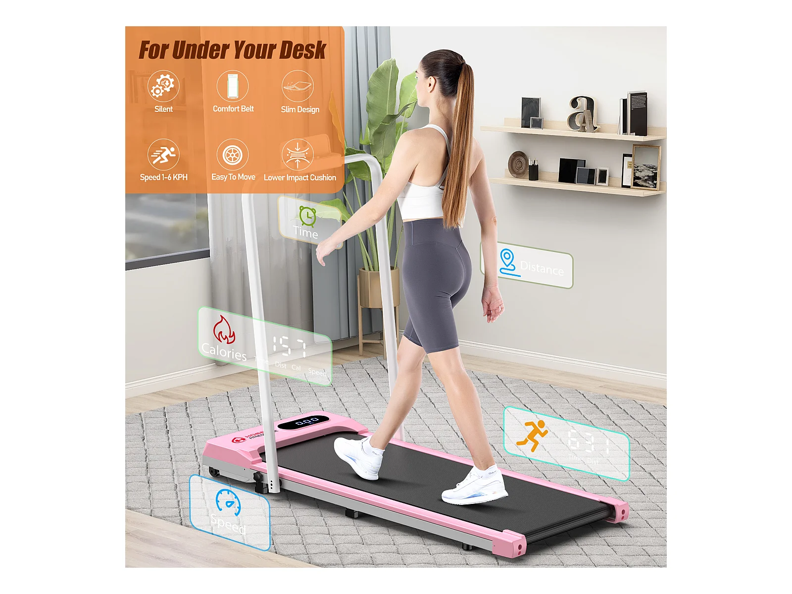 Unter dem Schreibtisch Laufband 1-6KM/H Walking Jogging-Maschine für Home Office mit Folding Option