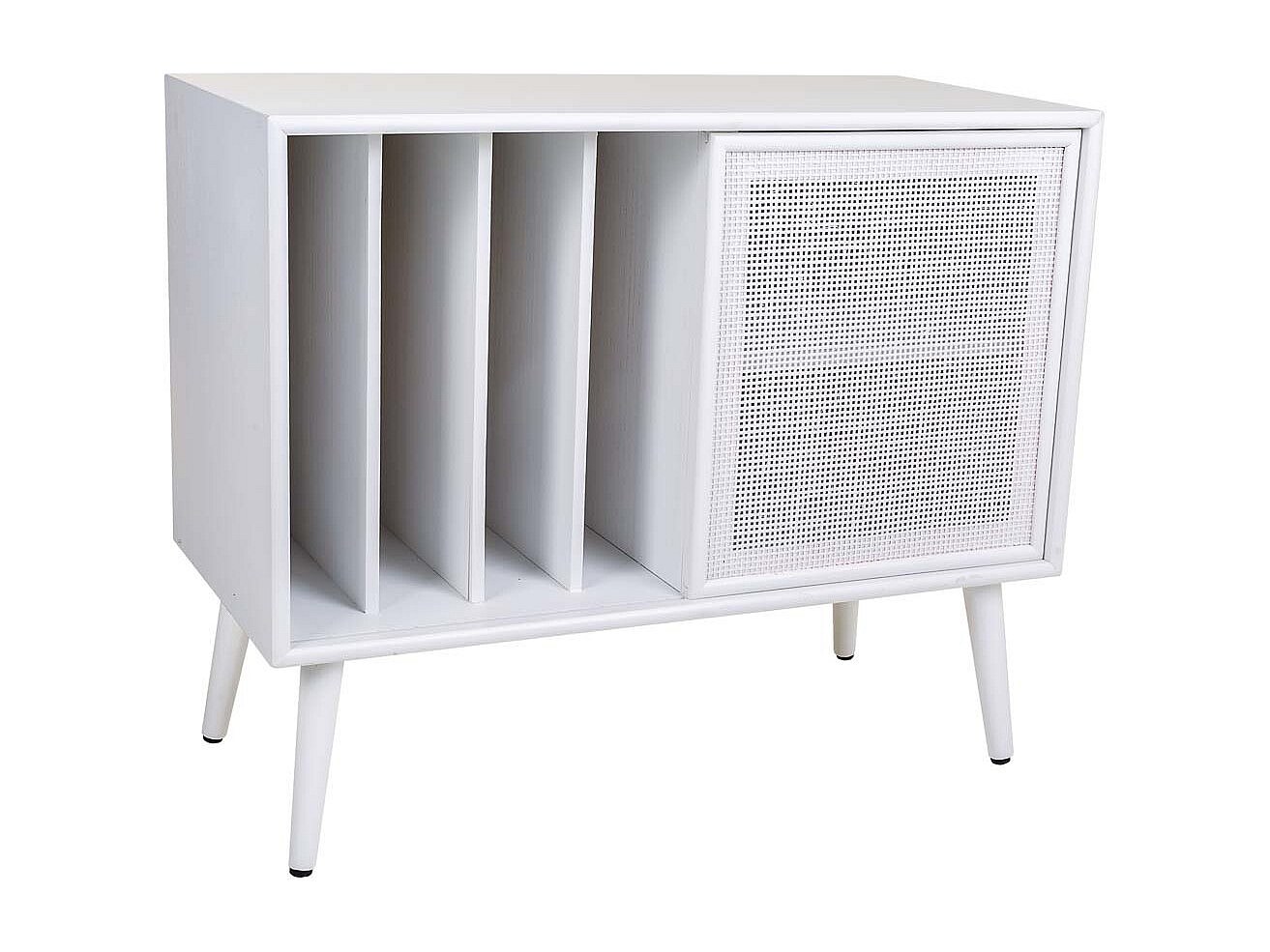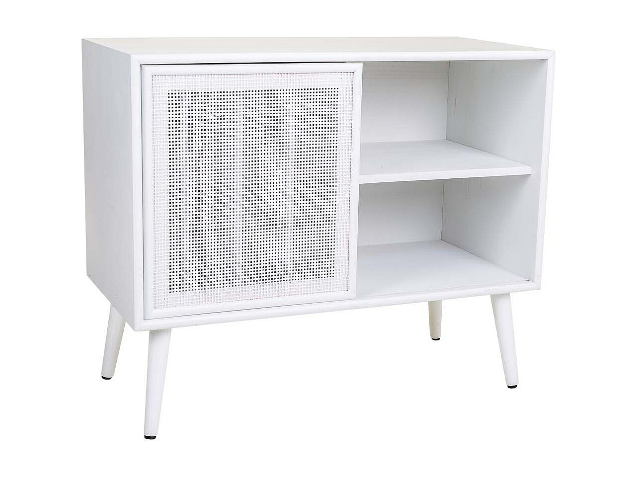 Unterschrank aus weißem Holz und Gitter, 80x38x67h cm