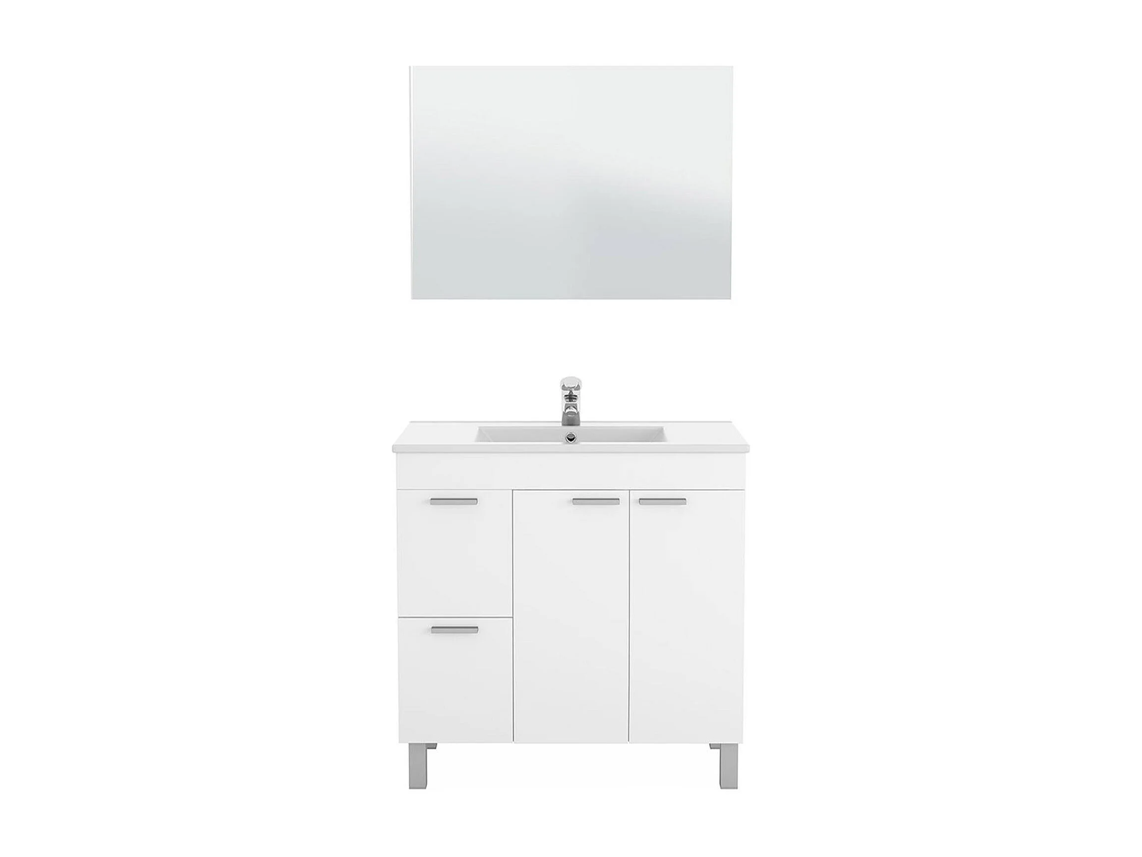 Unterschrank Dgabett, Badezimmerschrank, Kleiderschrank mit 2 Türen und zWeißchubladen mit Spiegel, Waschbecken nicht enthalten, 80x45h80 cm, Glänzend Weiß