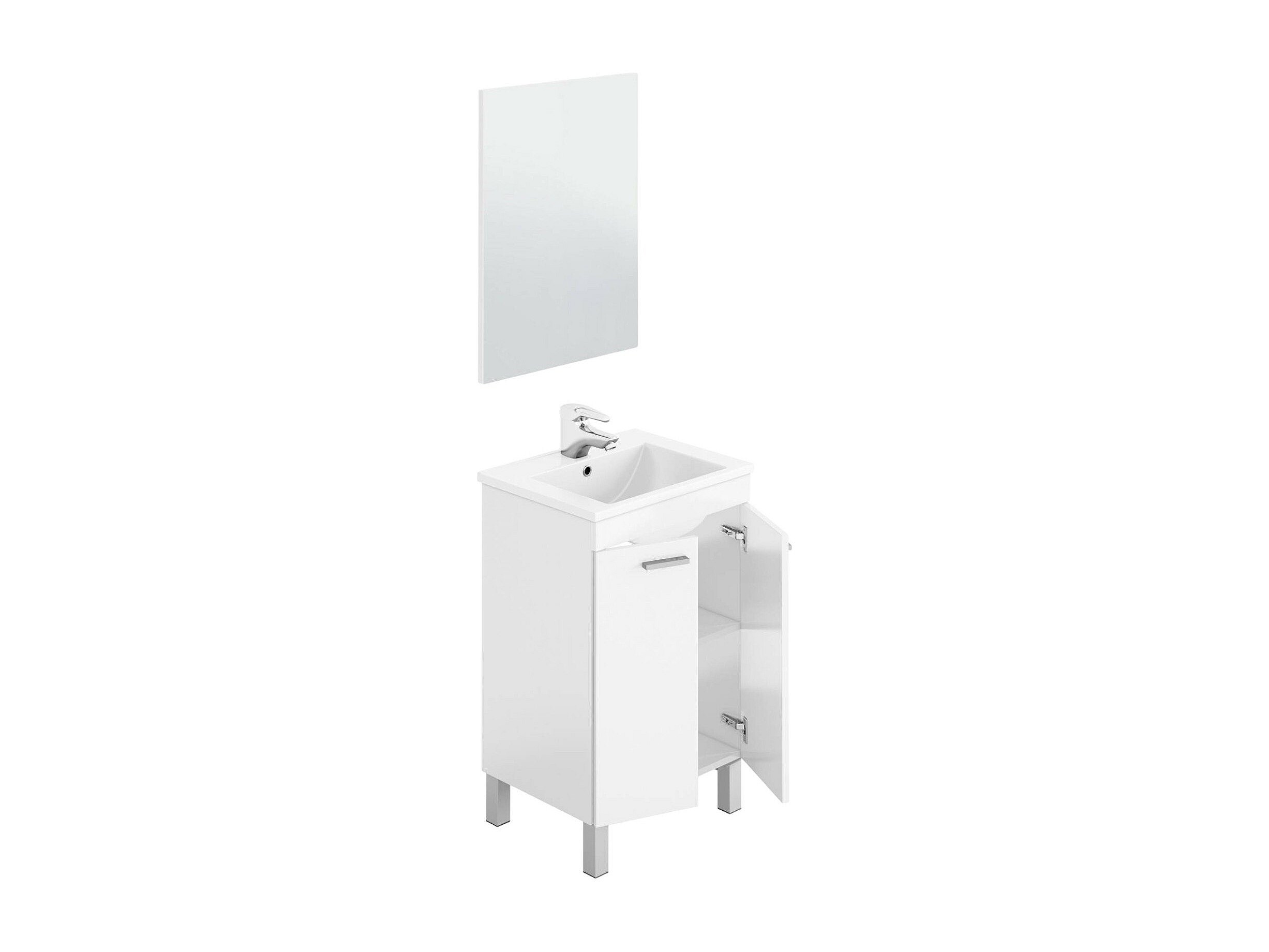 Unterschrank Dkolaro, Badezimmerschrank, Kleiderschrank mit 2 Türen mit Spiegel, Waschbecken nicht enthalten, 50x40h80 cm, Weiß