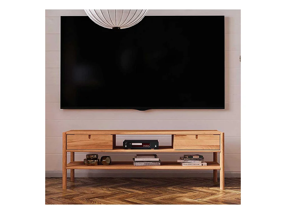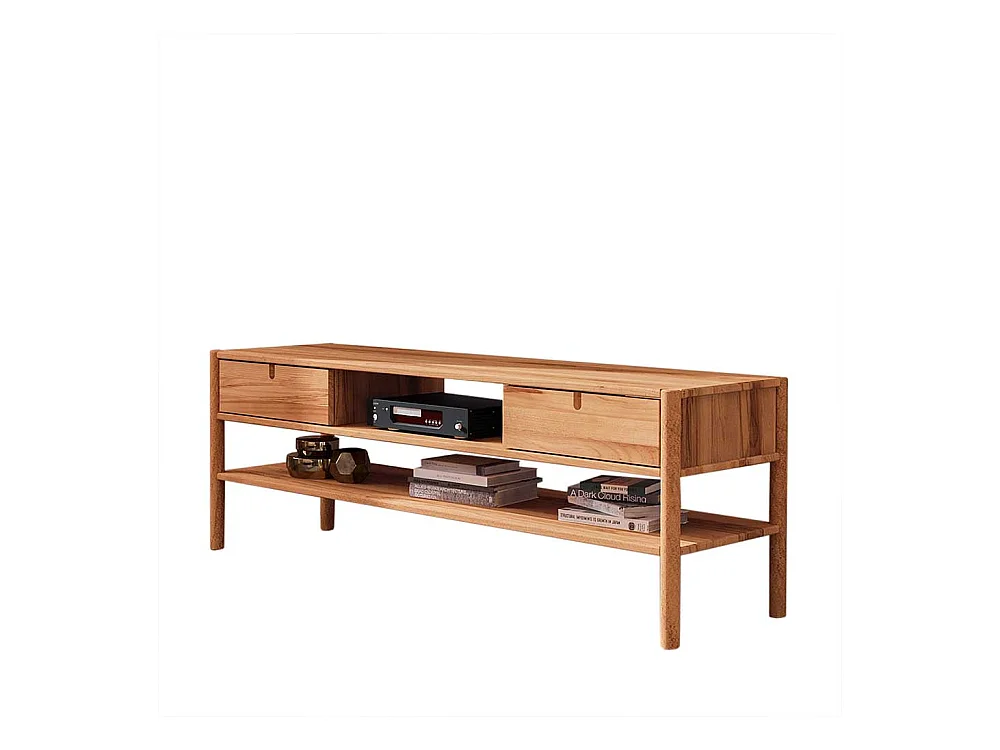 Unterschrank Fernseher aus Wildbuche Massivholz zwei Schubladen