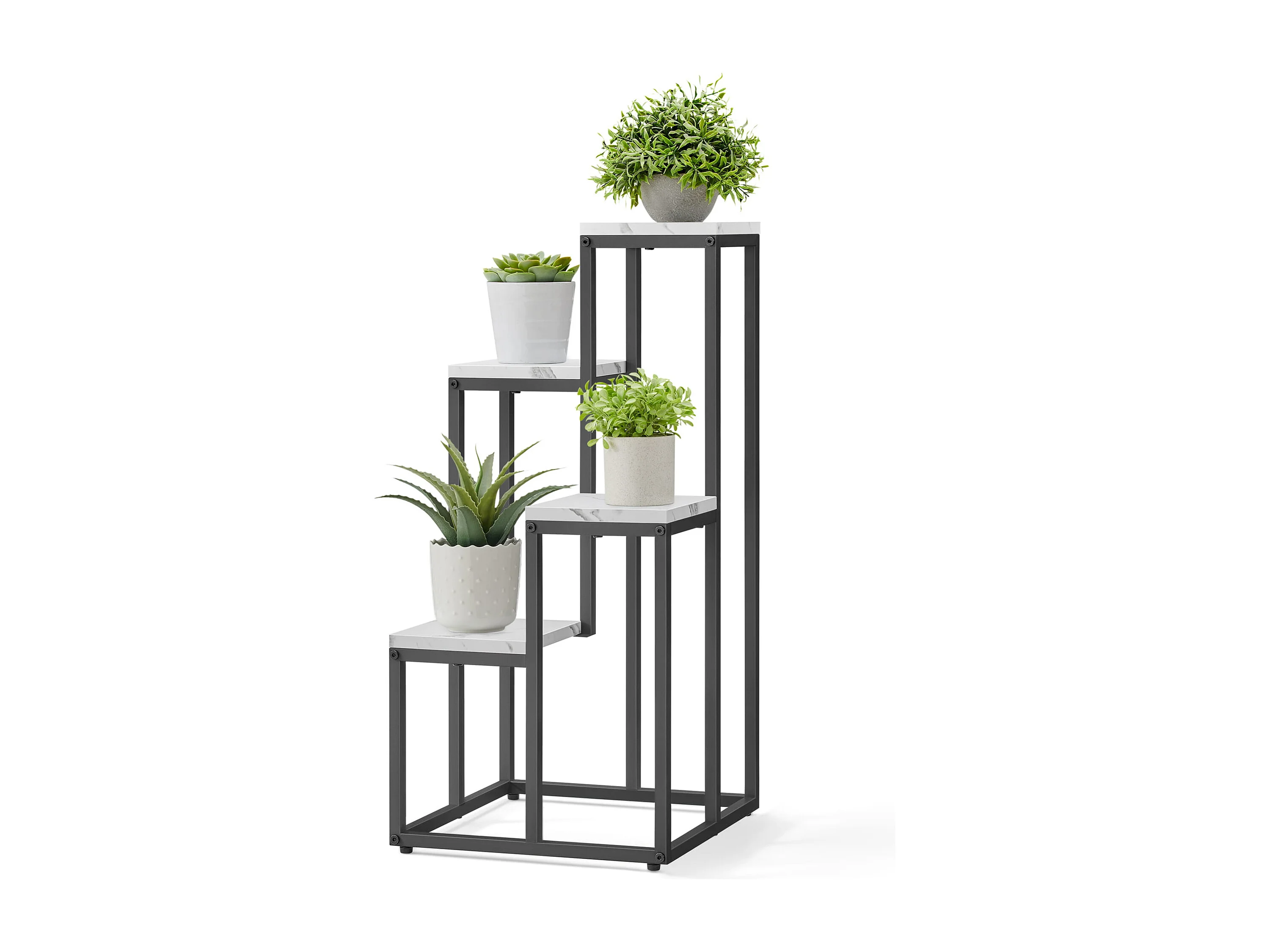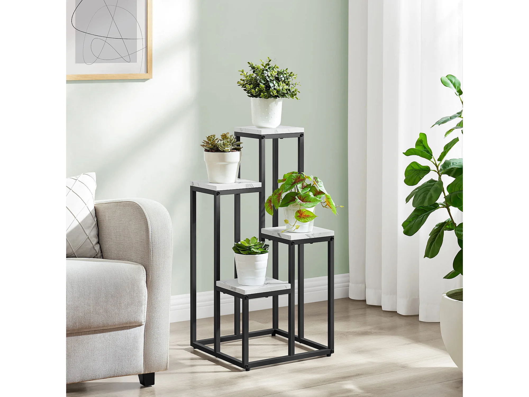 Valora Blumenständer 4 Ablagen weißer Marmor schwarze Beine Deko