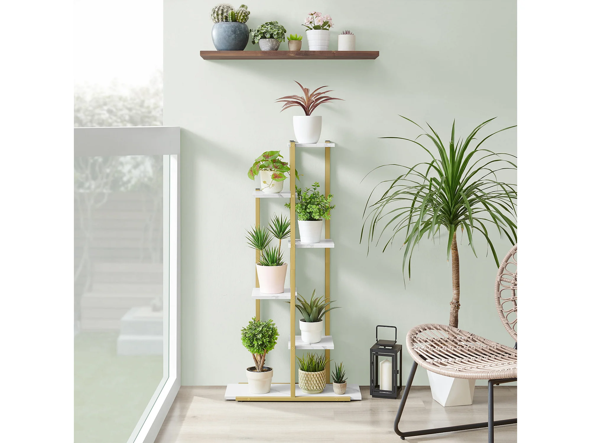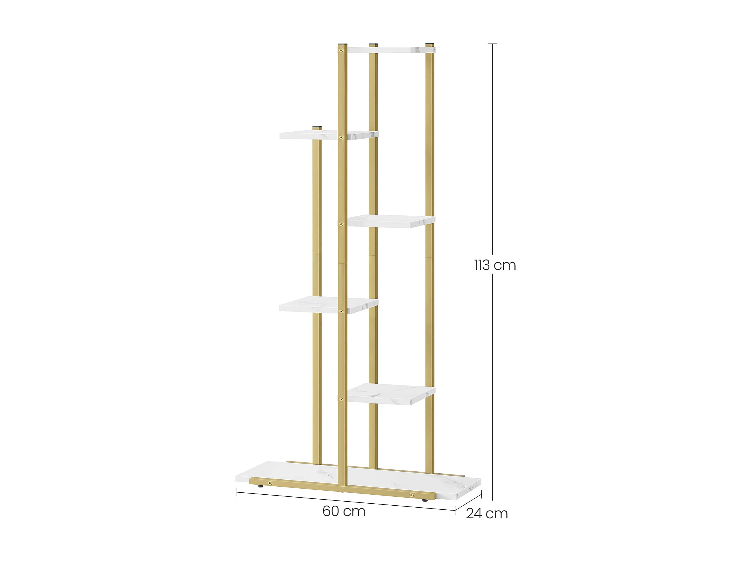 Valora Blumenständer mit 6 Ablagen, Marmor, mit goldenem Eisenrahmen zur Dekoration