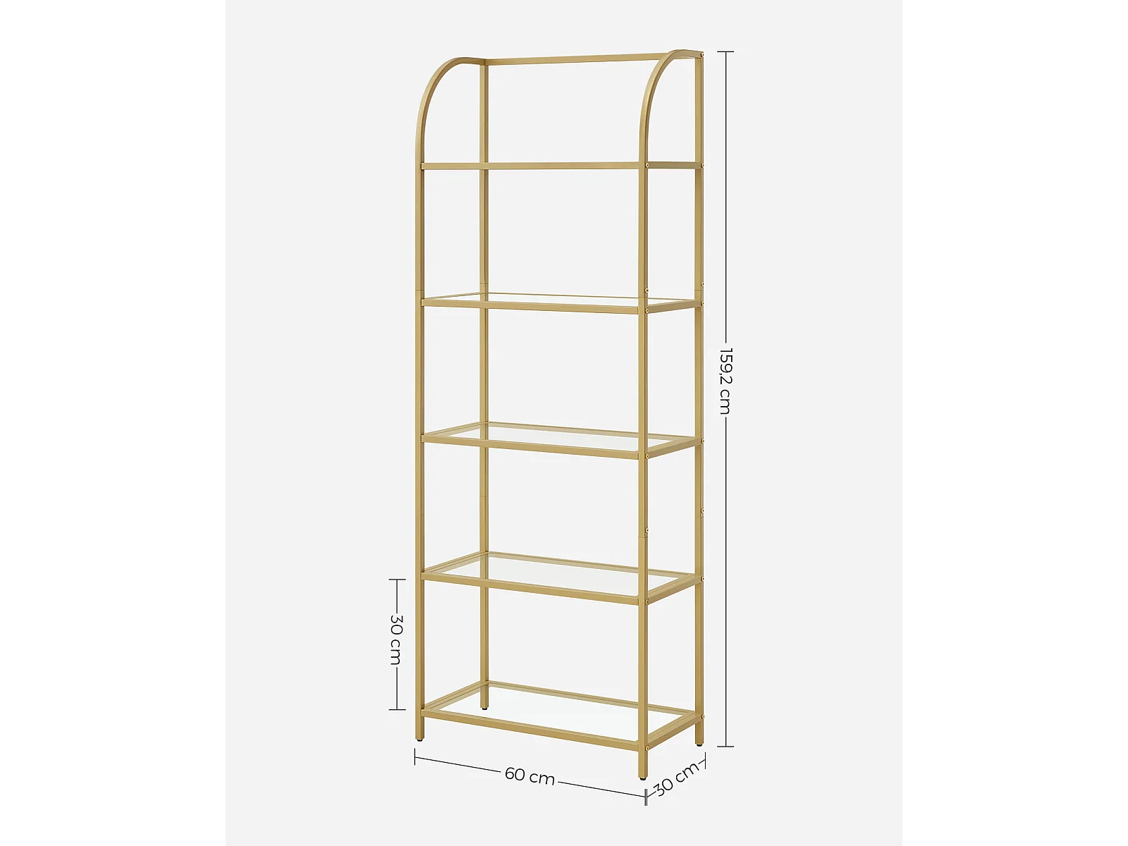 Valora Bücherregal LGT051A61 Glasablage Gold Stahl für Wohnzimmer