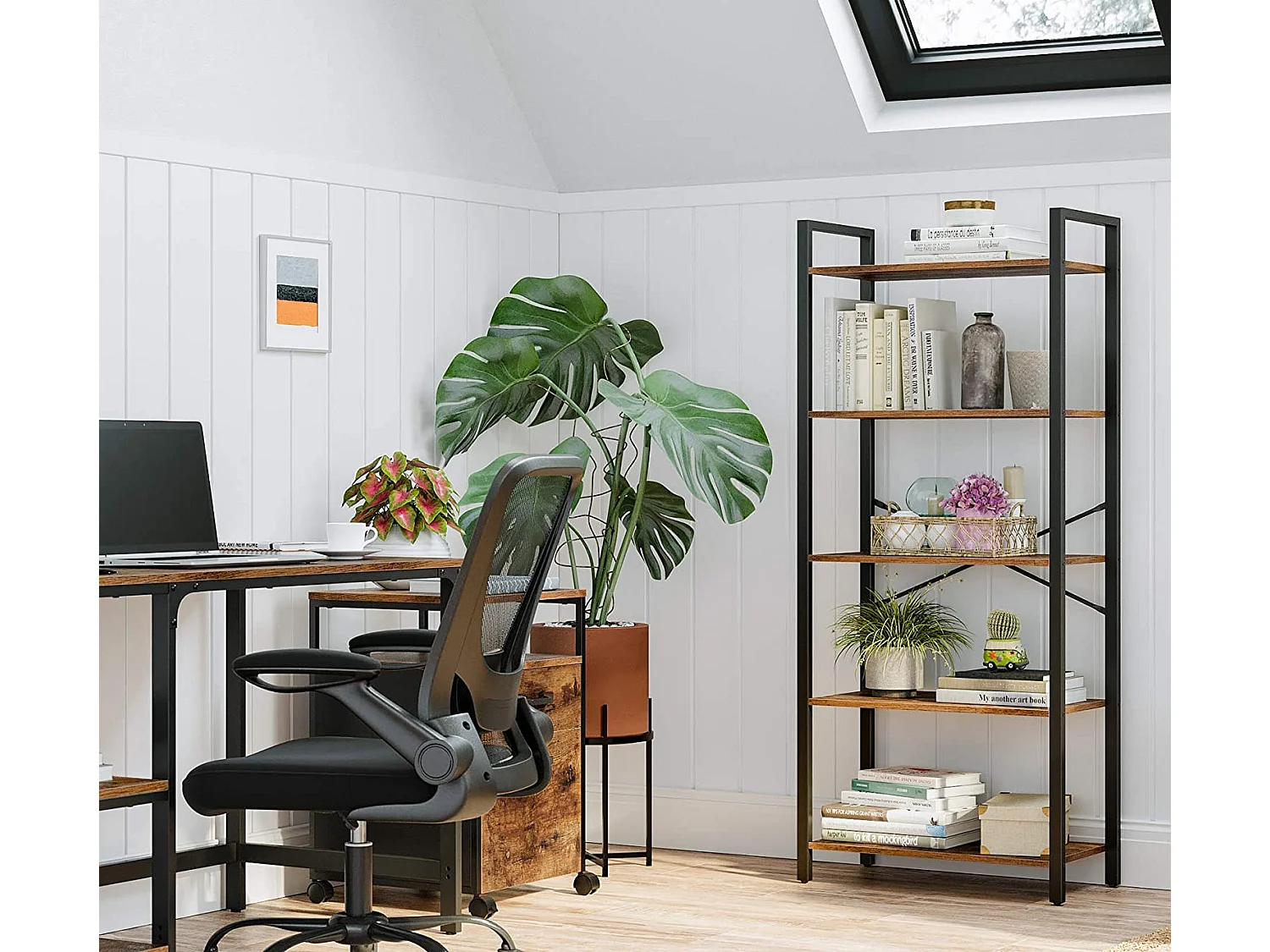 Valora Bücherregal, rustikales braunes Stahlregal mit 5 Ablagen