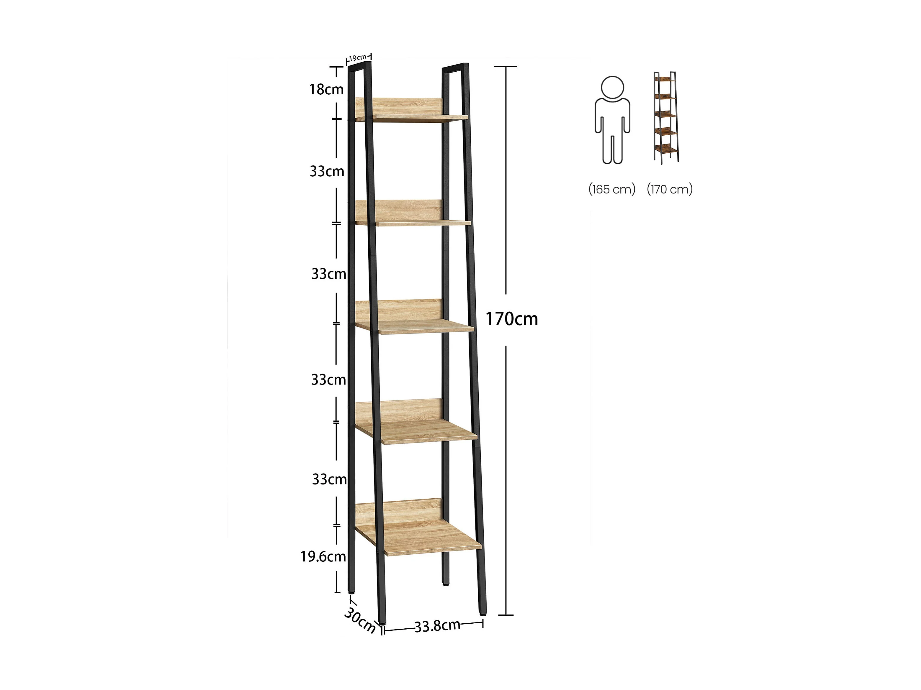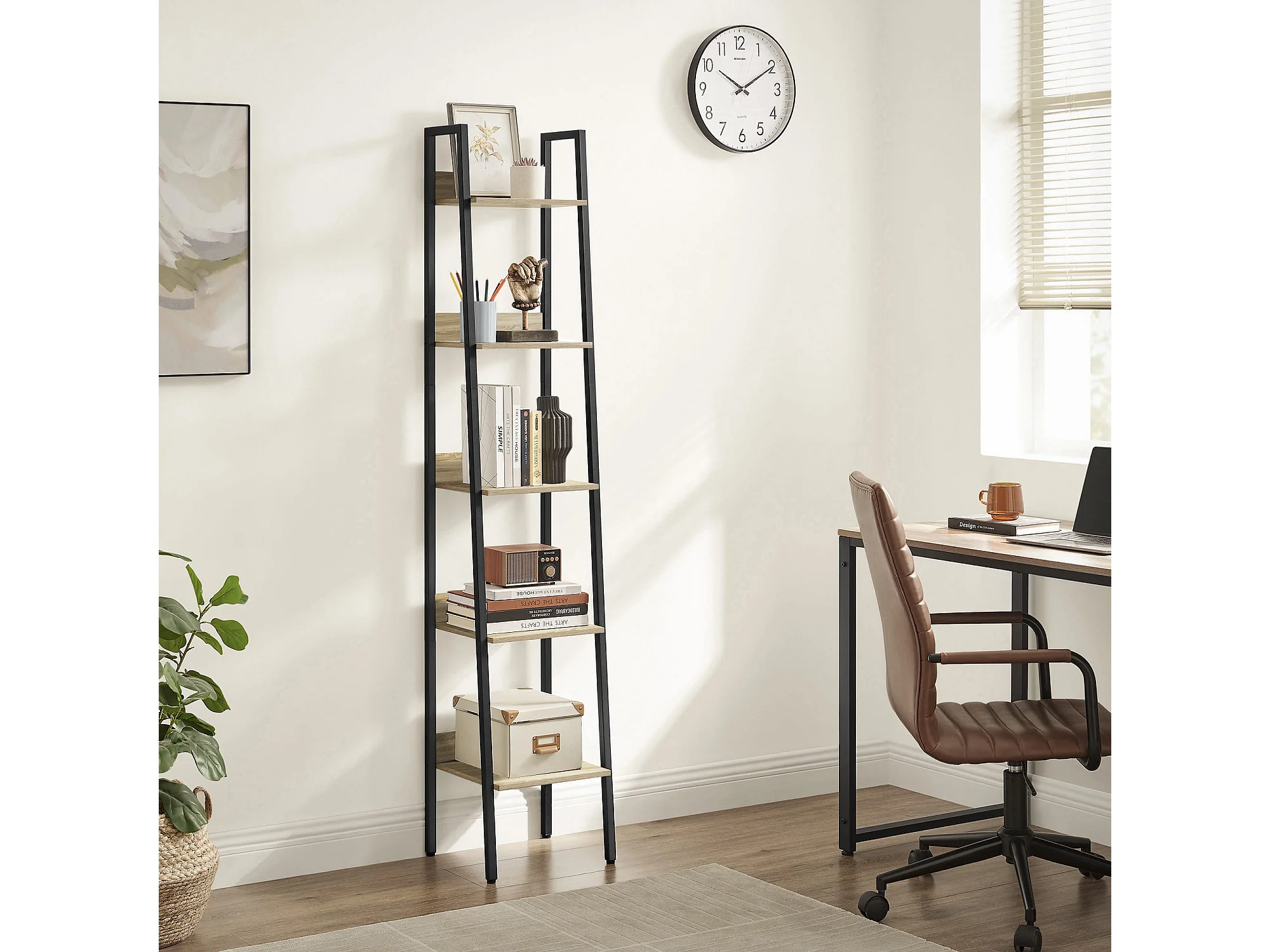 Valora Bücherregal SONOMA, 5-stöckiges schmales Bücherregal aus Spanplatte und Stahl