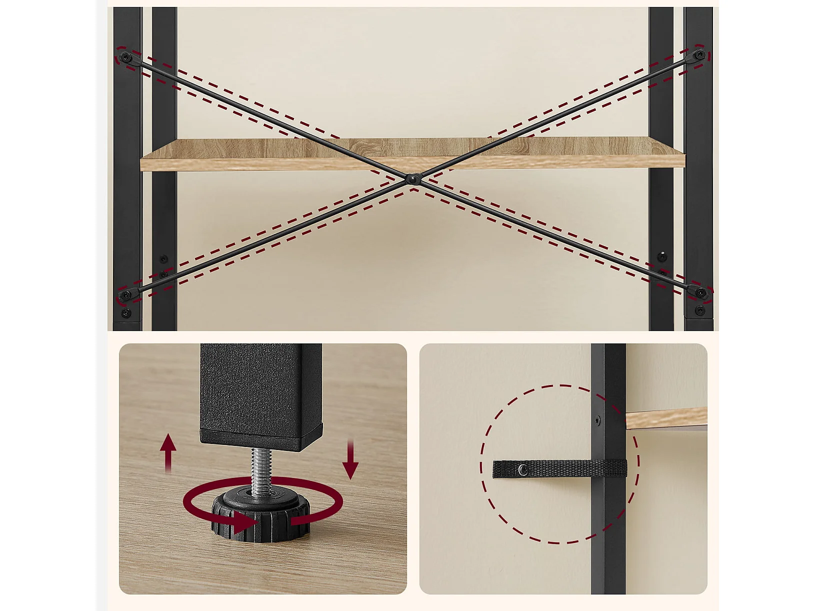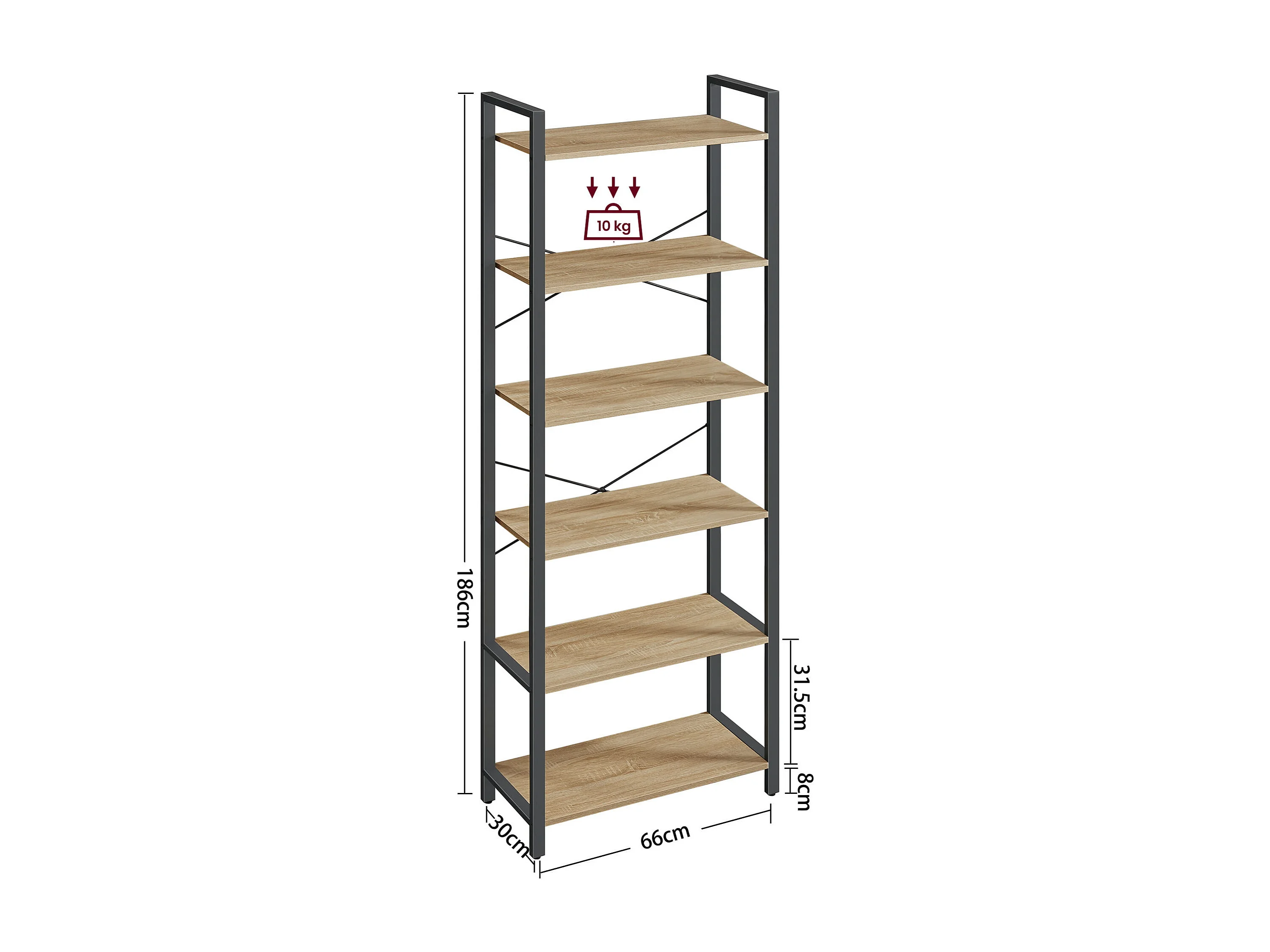 Valora Bücherregal Sonoma 6 Ebenen Spanplatte/Stahl Wohnzimmer