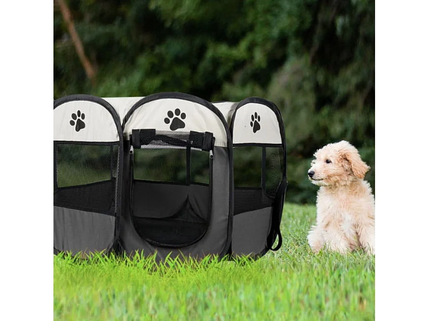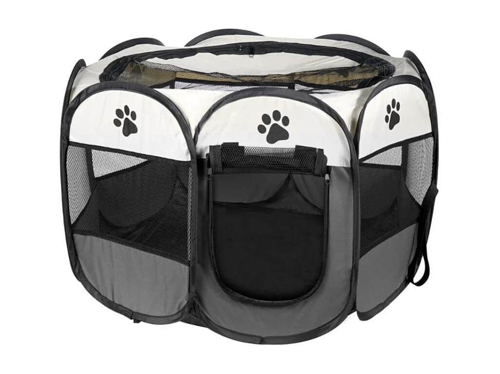 Valora Faltbarer Laufstall für Hunde und Katzen, Grau, mit Netzwänden