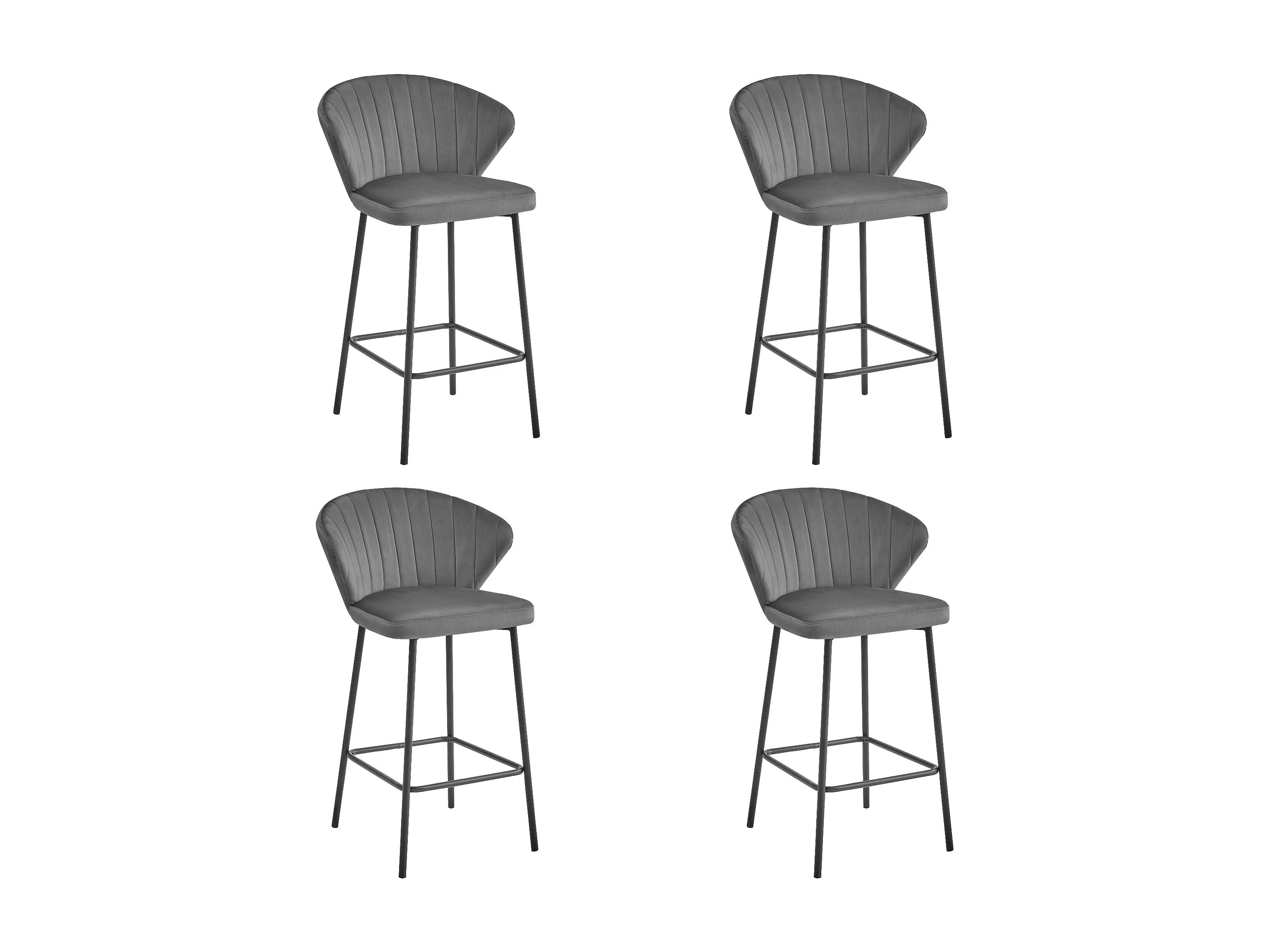 Valora GATTA Barhocker, dunkelgrauer Samt, schwarze Beine, 4er-Pack