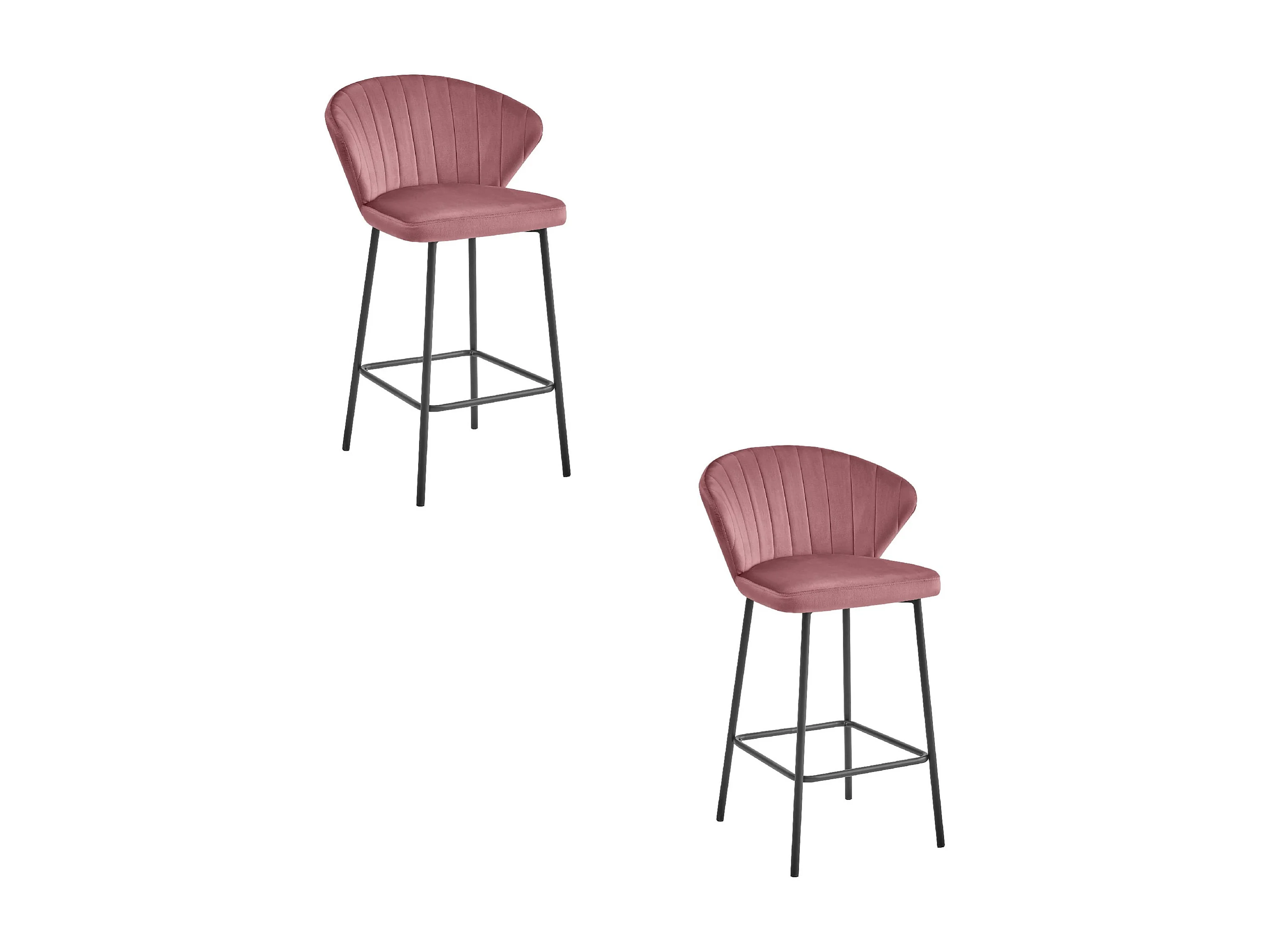 Valora GATTA Hocker, dunkelrosa Samt, schwarze Beine, für die Küche (2 Stück)