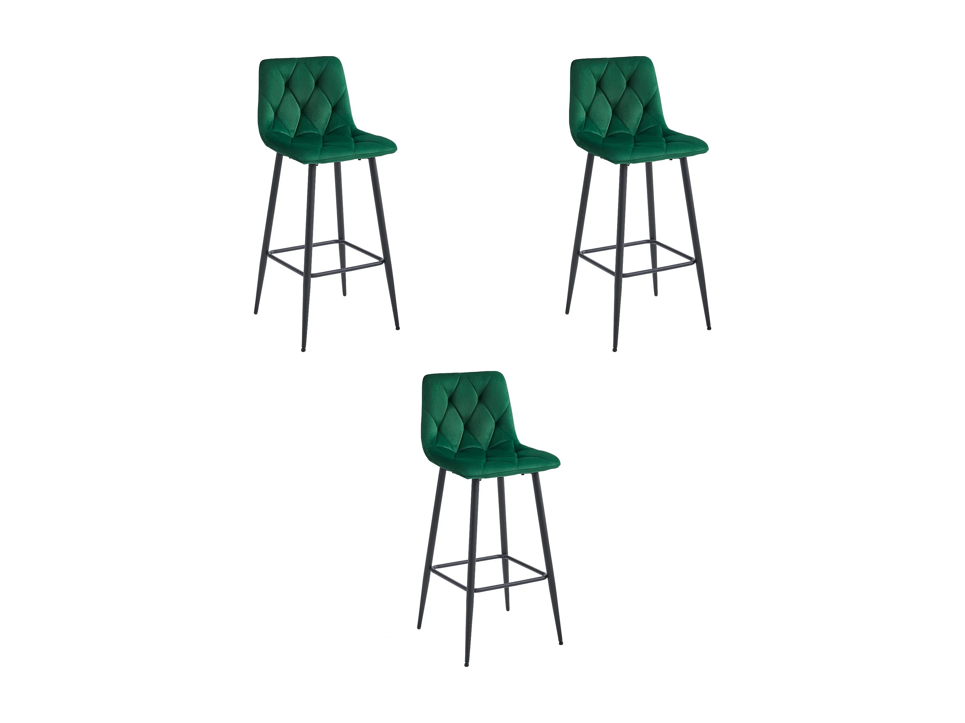 Valora KODA Hocker, dunkelgrüner Samt, schwarze Beine (3 Stück)