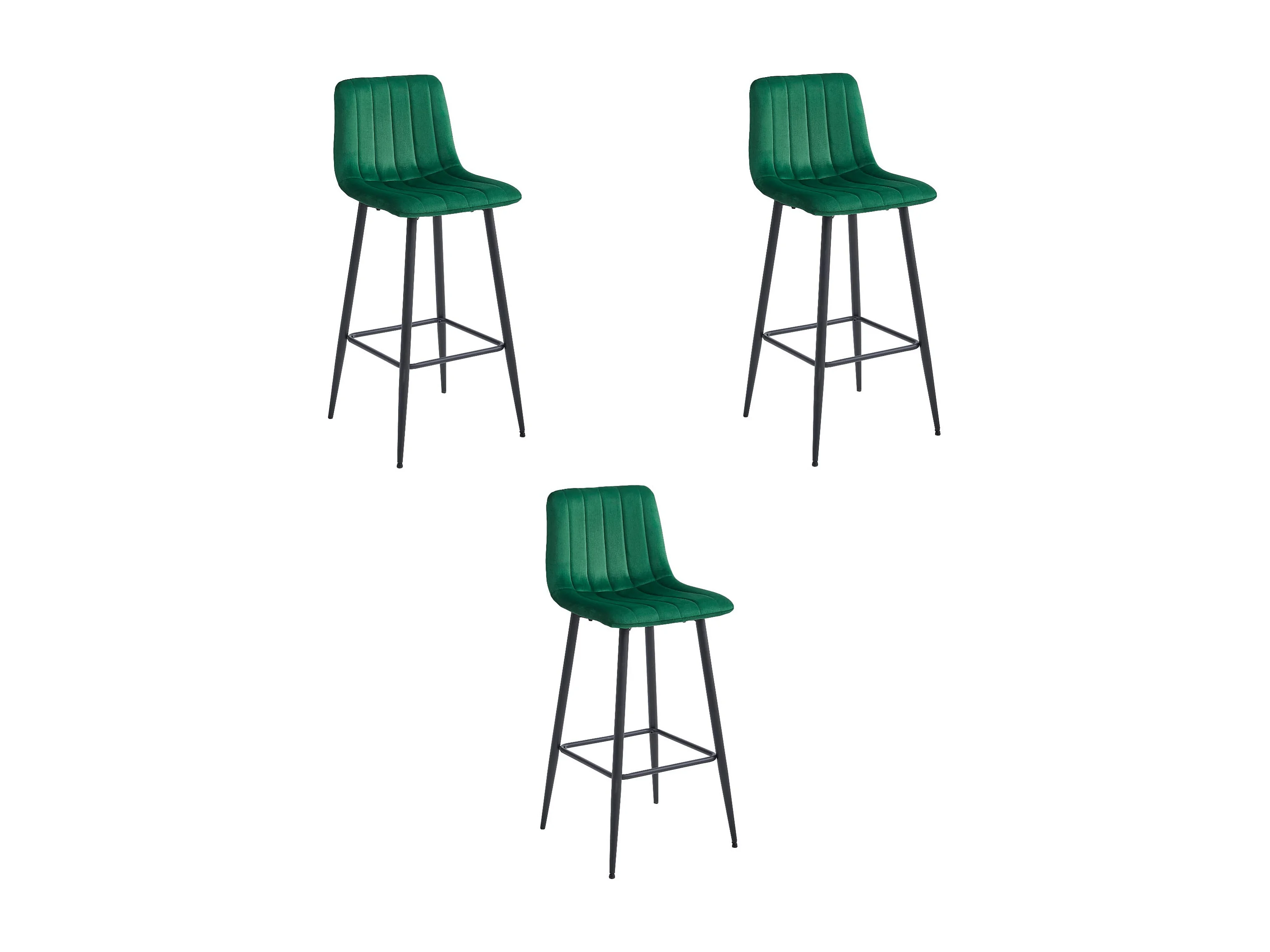Valora POZZA Hocker, dunkelgrüner Samt, schwarze Beine, für die Küche (3er-Pack)