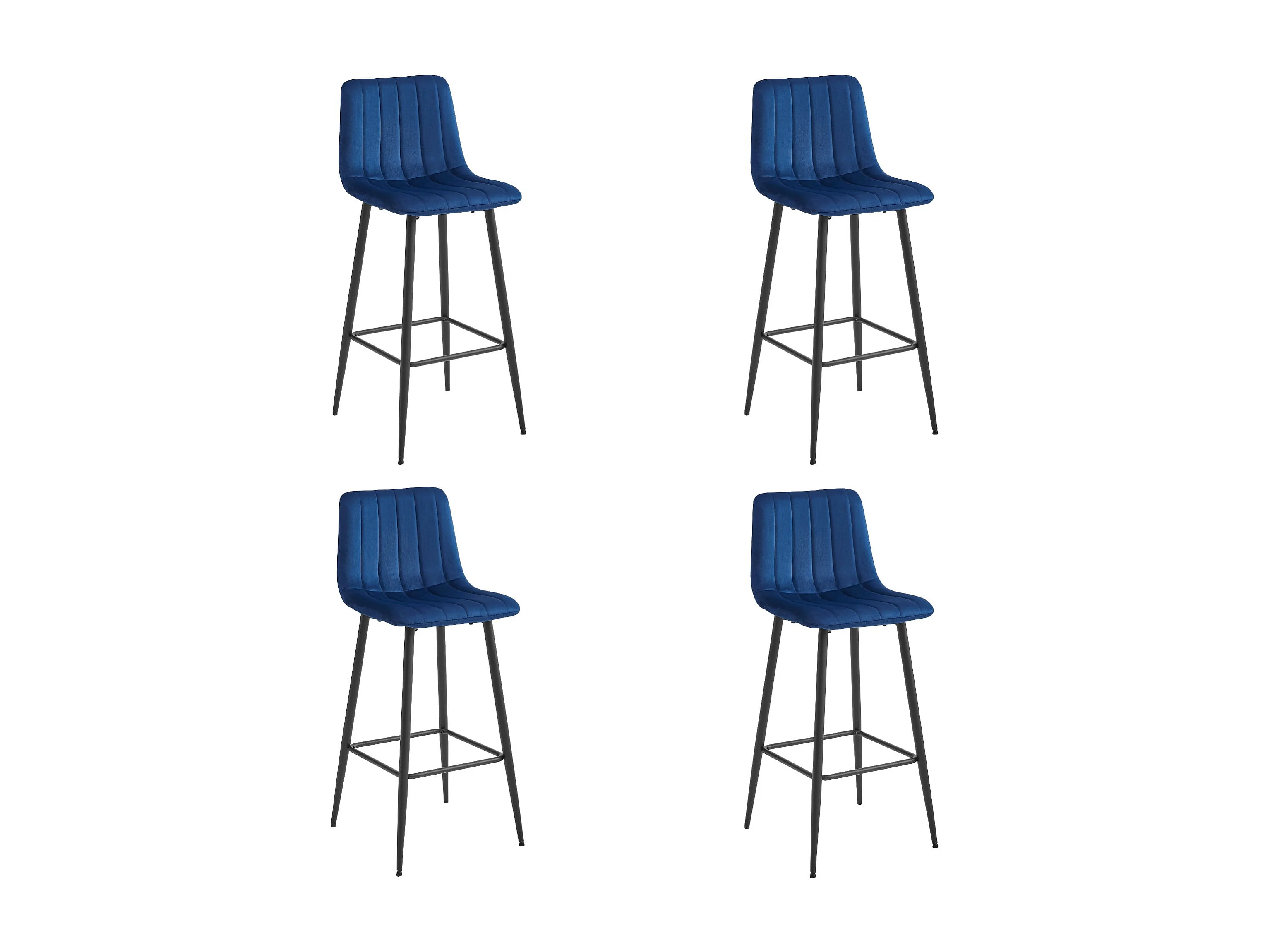 Valora POZZA Hocker, marineblauer Samt, schwarze Beine (4er-Pack)