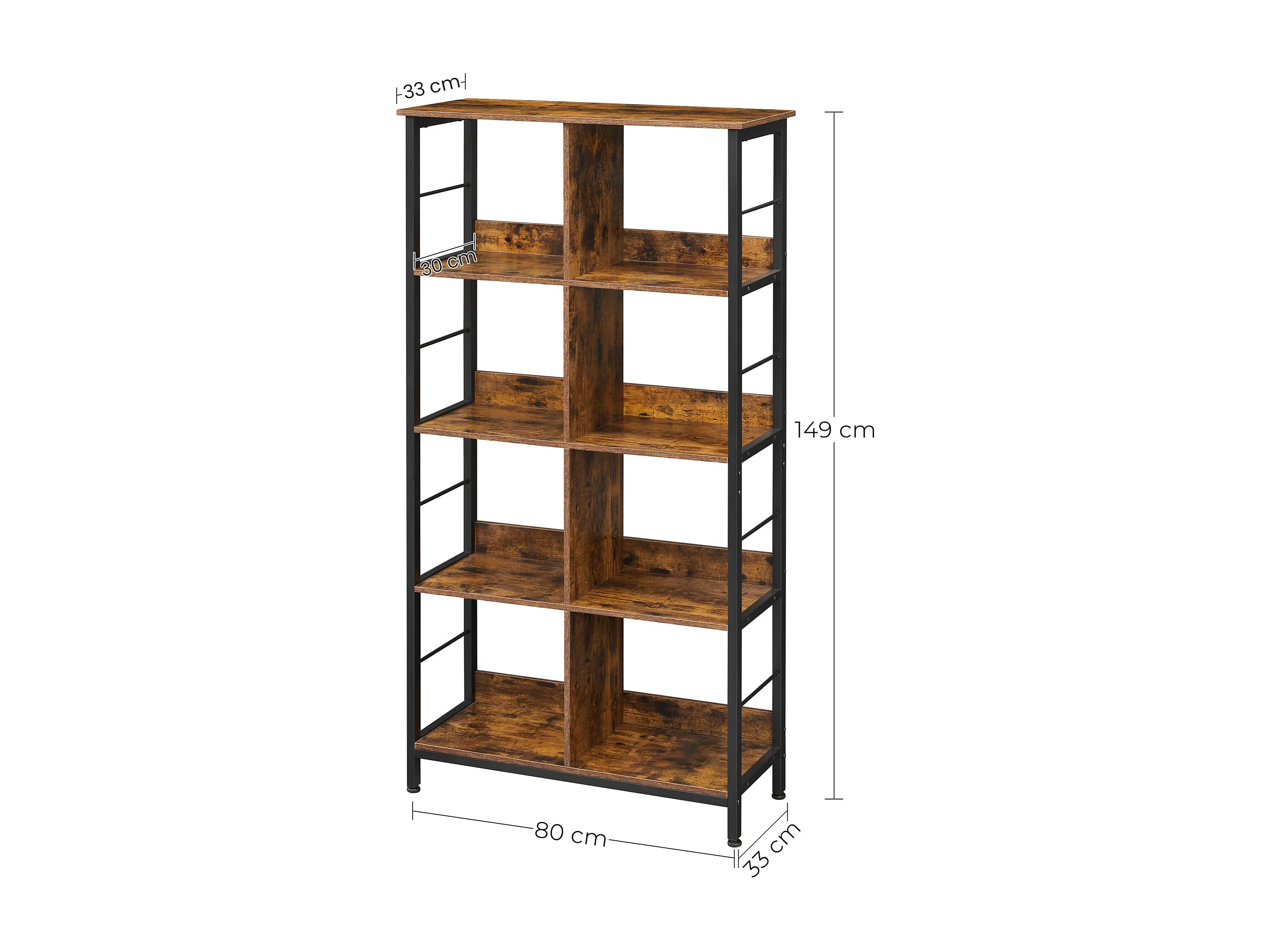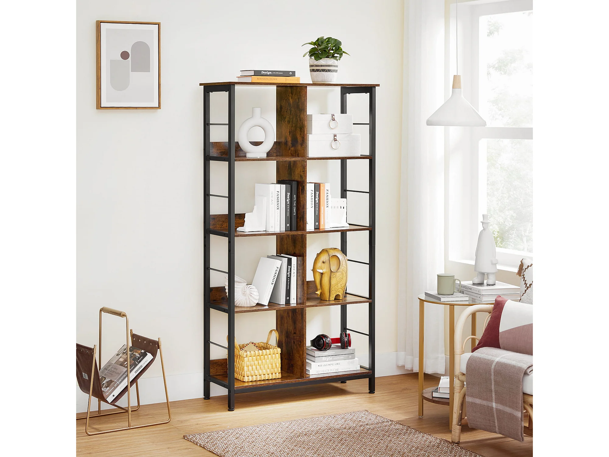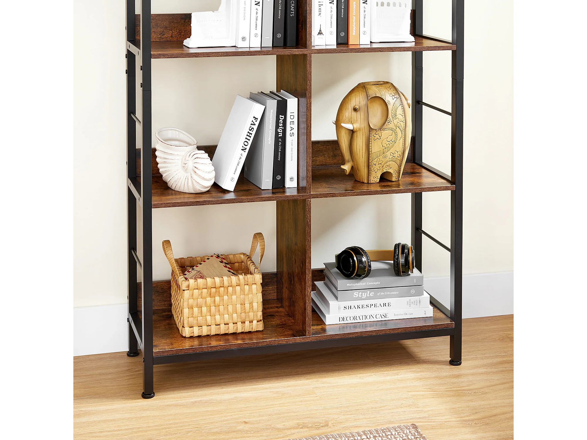 Valora Regal Bücherregal Rustikales braunes Metall für das Wohnzimmer
