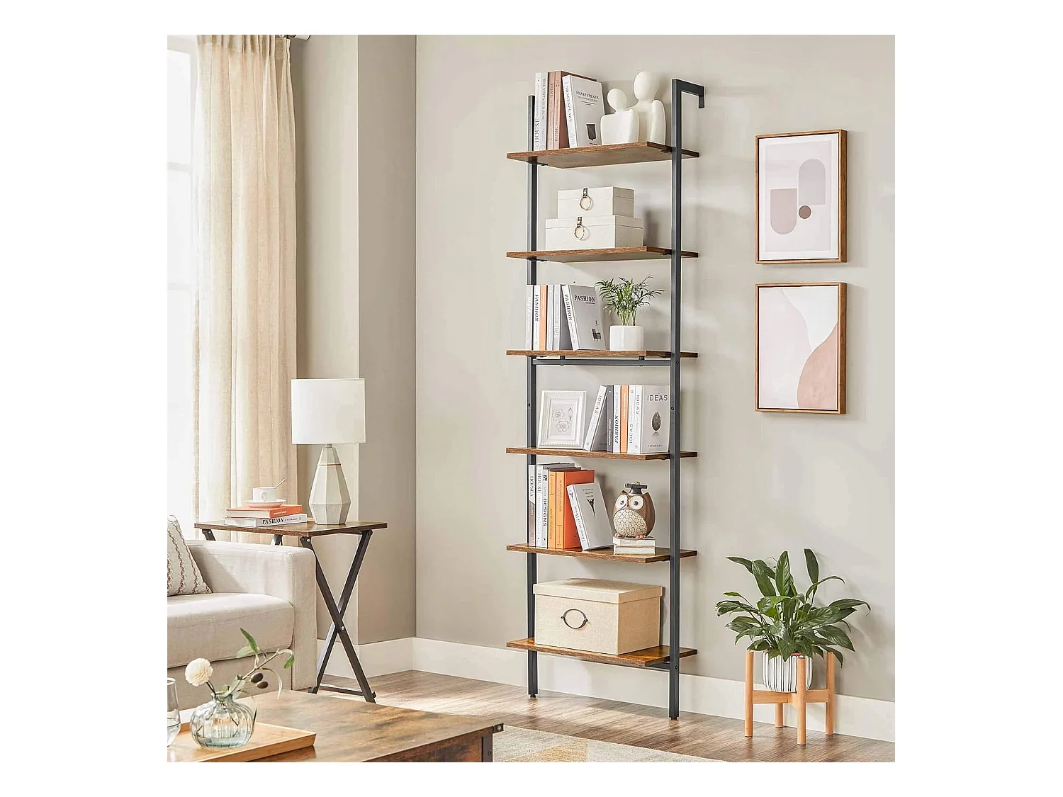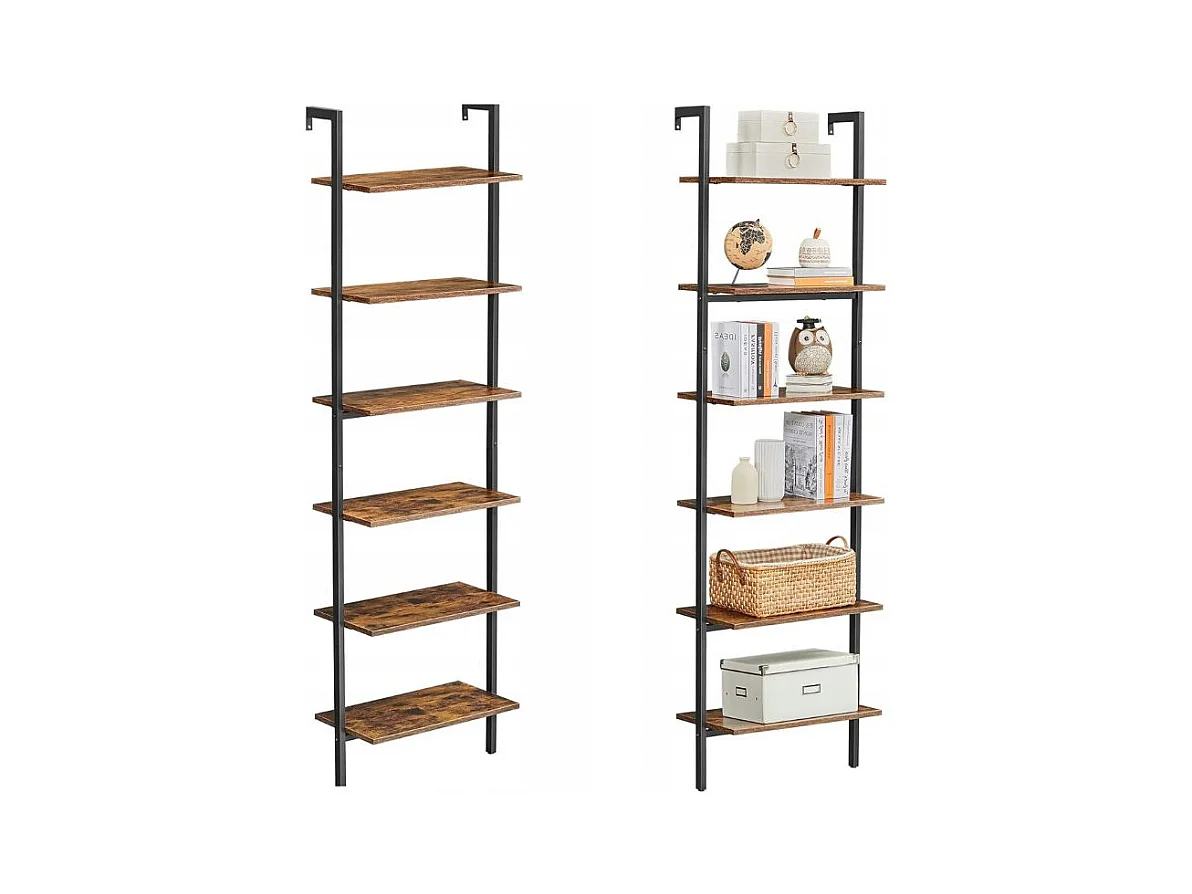 Valora Rustikales braunes Bücherregal im Loft-Stil mit 6 Regalen | Vintage