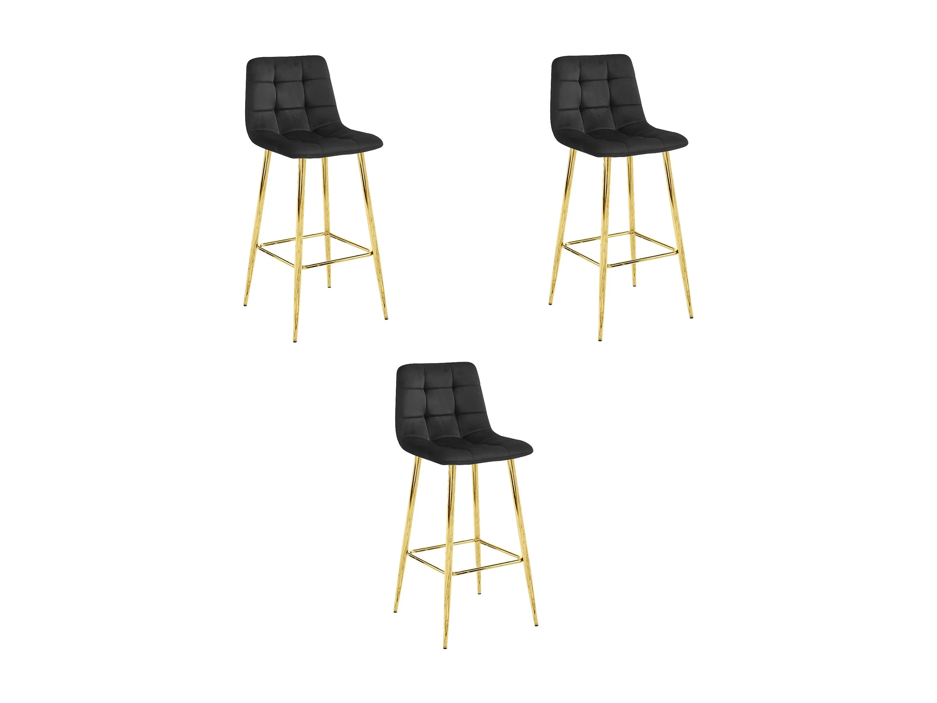 Valora TEOTO Hocker, schwarzer Samt, goldene Beine (3 Stück)