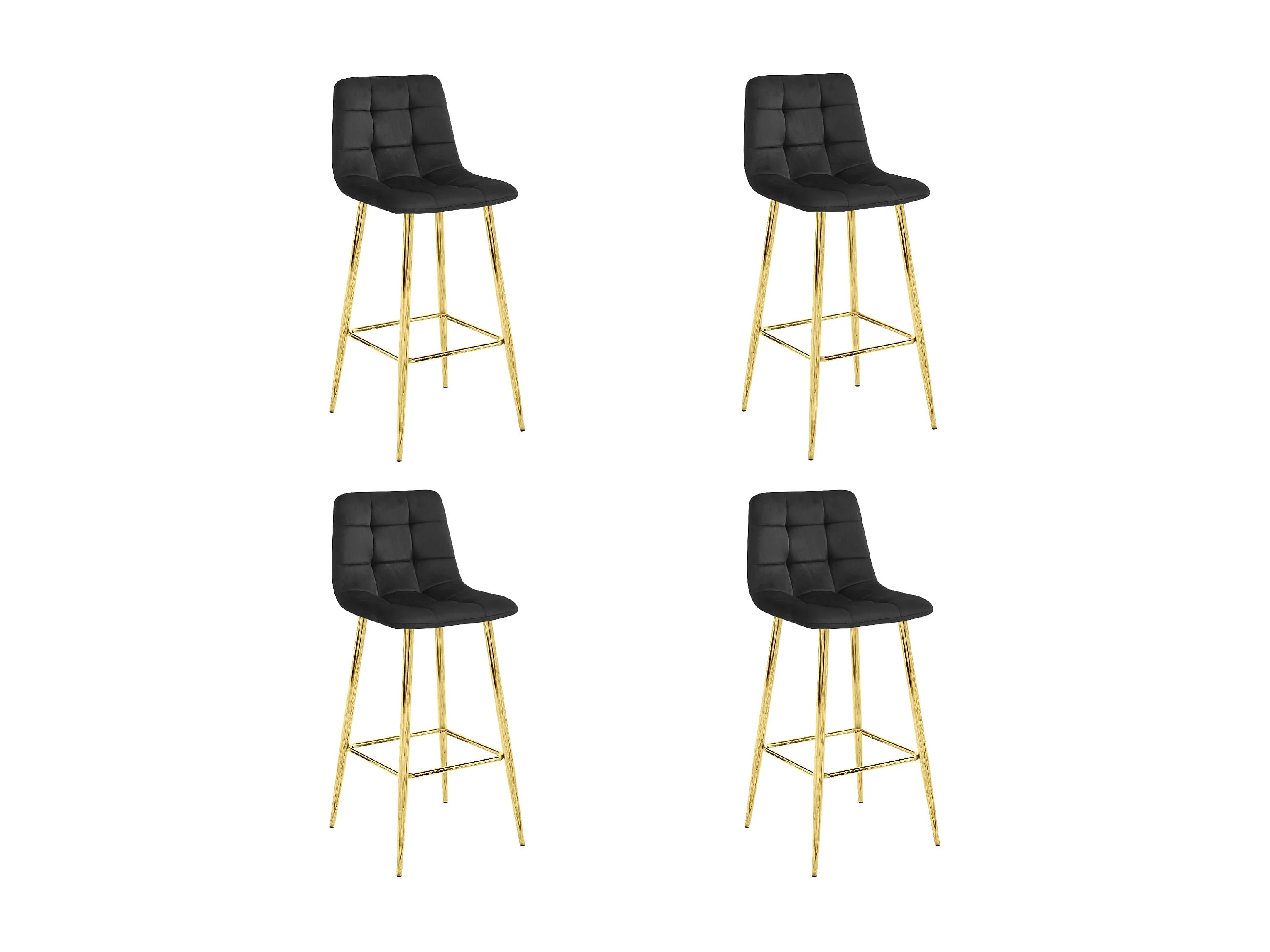 Valora TEOTO Hocker, schwarzer Samt, goldene Beine, modernes Design, 4er-Pack