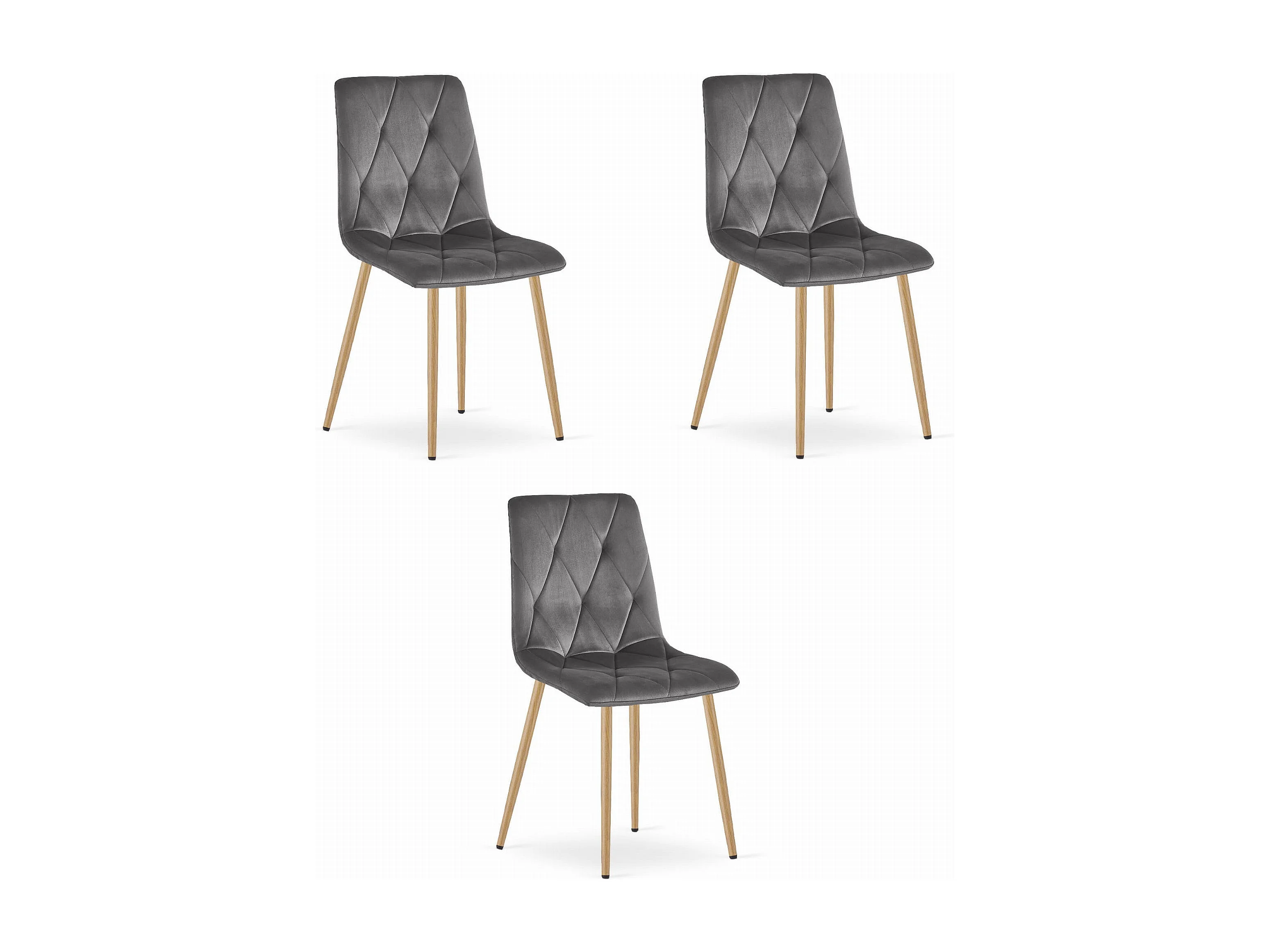 Valora TYRA Stuhl, dunkelgrauer Samt, Holzbeine (3 Stück)