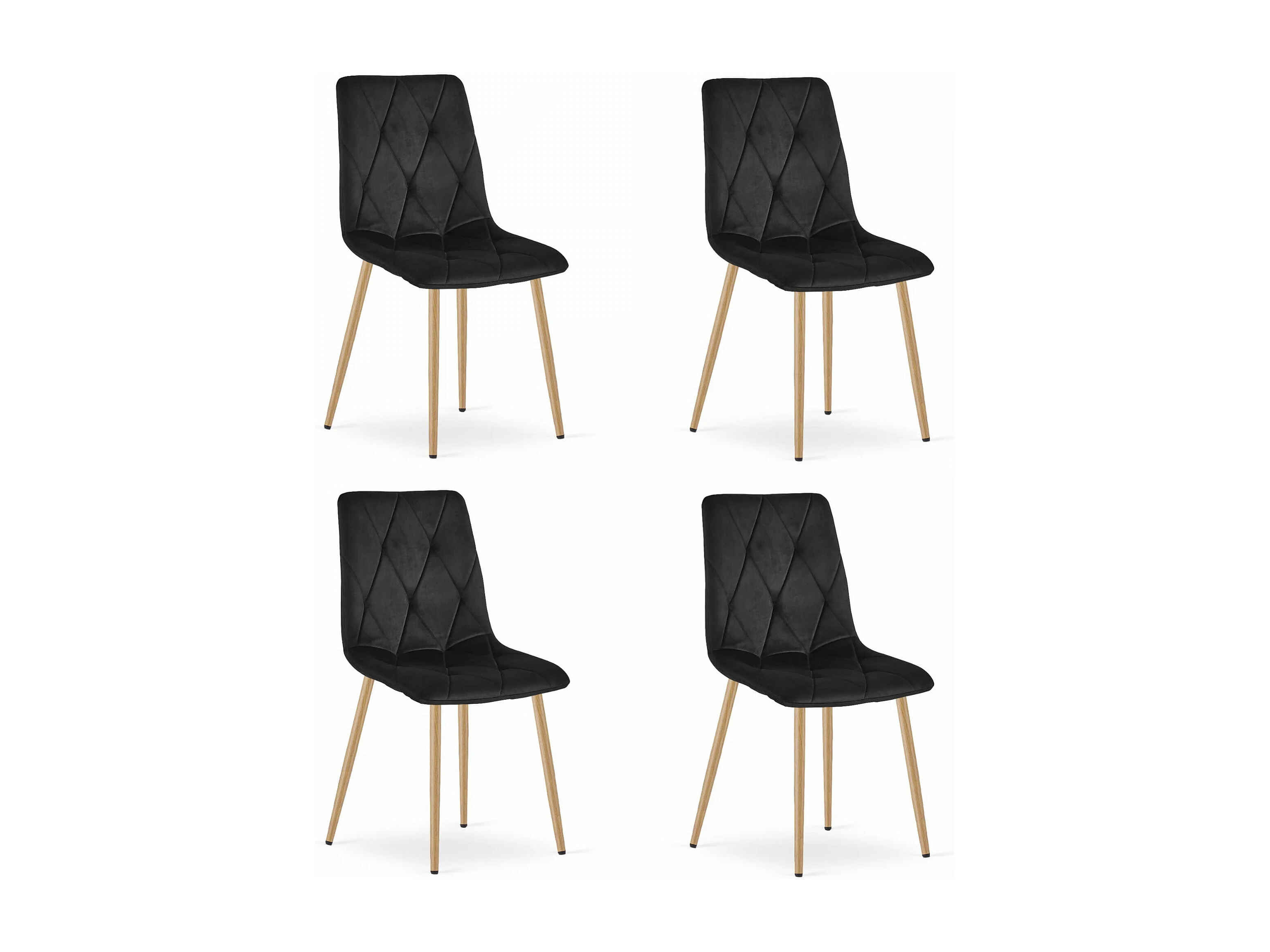 Valora TYRA Stuhl, schwarzer Samt, Beine in Holzoptik (4 Stück)