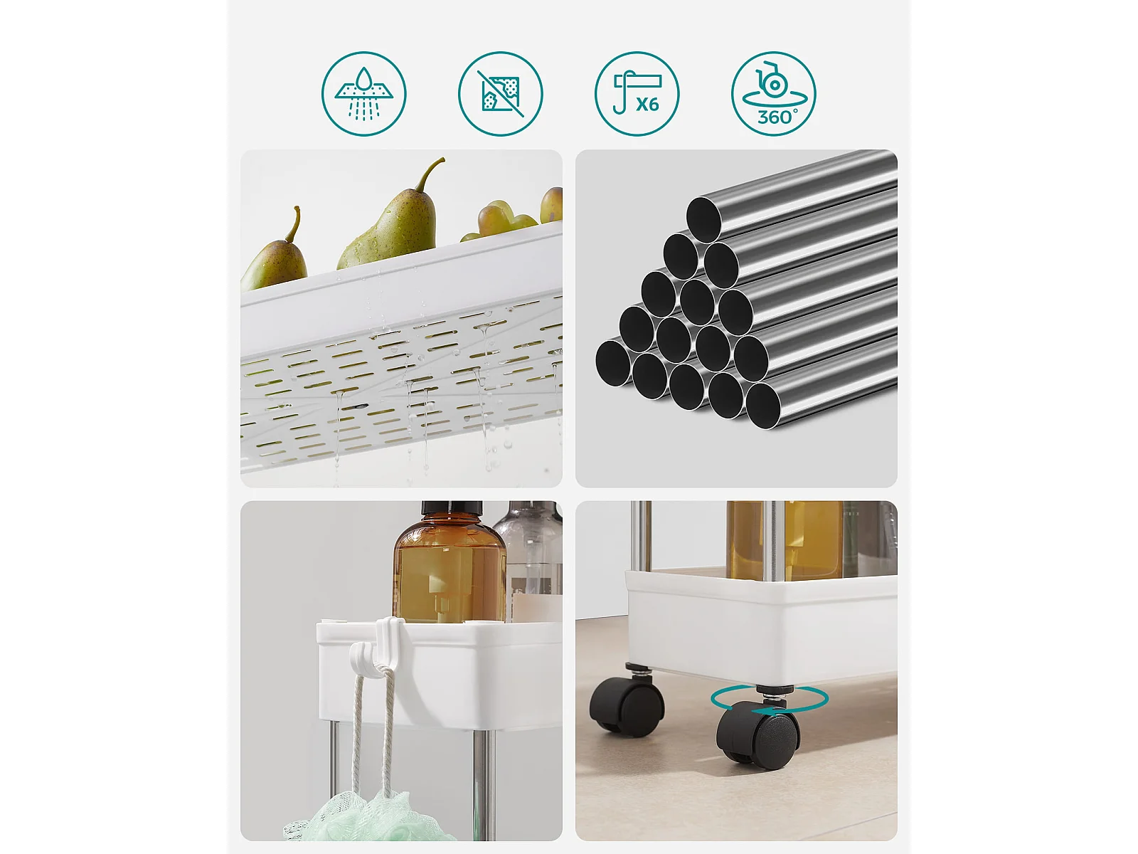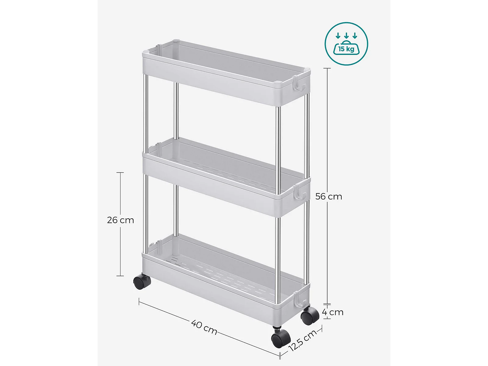 Valora Weißer mobiler Regalwagen mit 3 Ablageflächen für Küchen